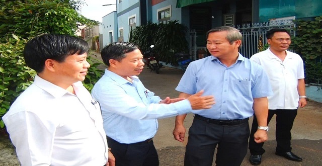 Buổi sáng cùng ngày, đồng chí Cao Tiến Sỹ, TUV, Bí thư Huyện ủy cùng đoàn công tác của huyện cũng đã đi kiểm tra thực tế về công tác xây dựng khu dân cư kiểu mẫu và một cơ sở sản xuất trên địa bàn xã.