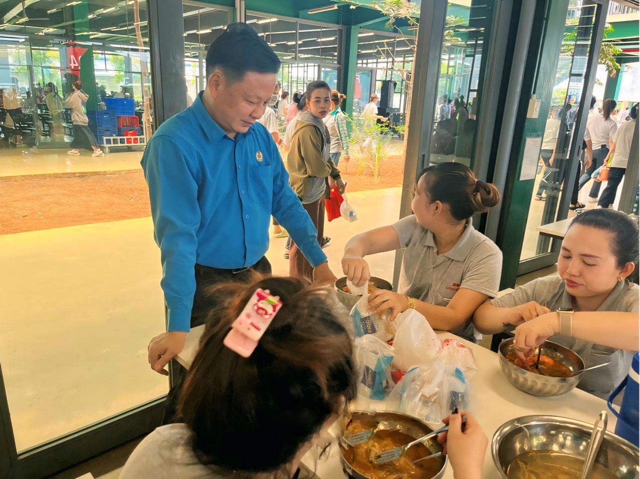 Lãnh đạo LĐLĐ tỉnh và đoàn viên, người lao động tại “Bữa cơm Công đoàn”