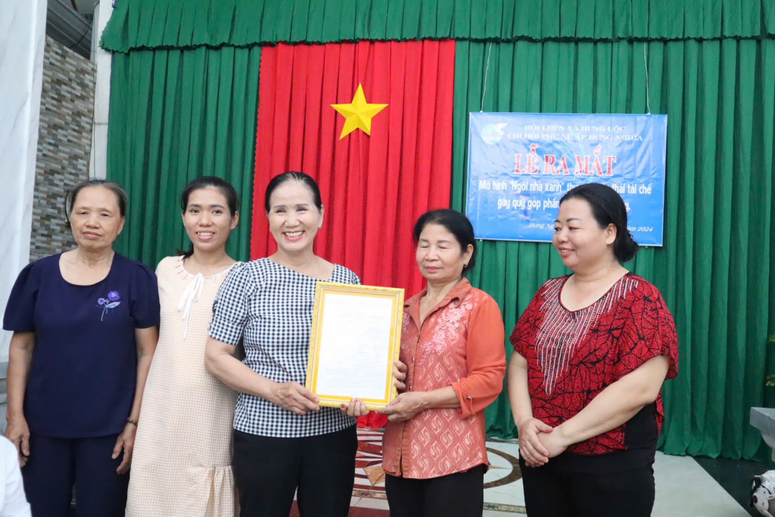Cô Xuân (ở giữa) tại buổi Lễ ra mắt mô hình “Ngôi nhà xanh”