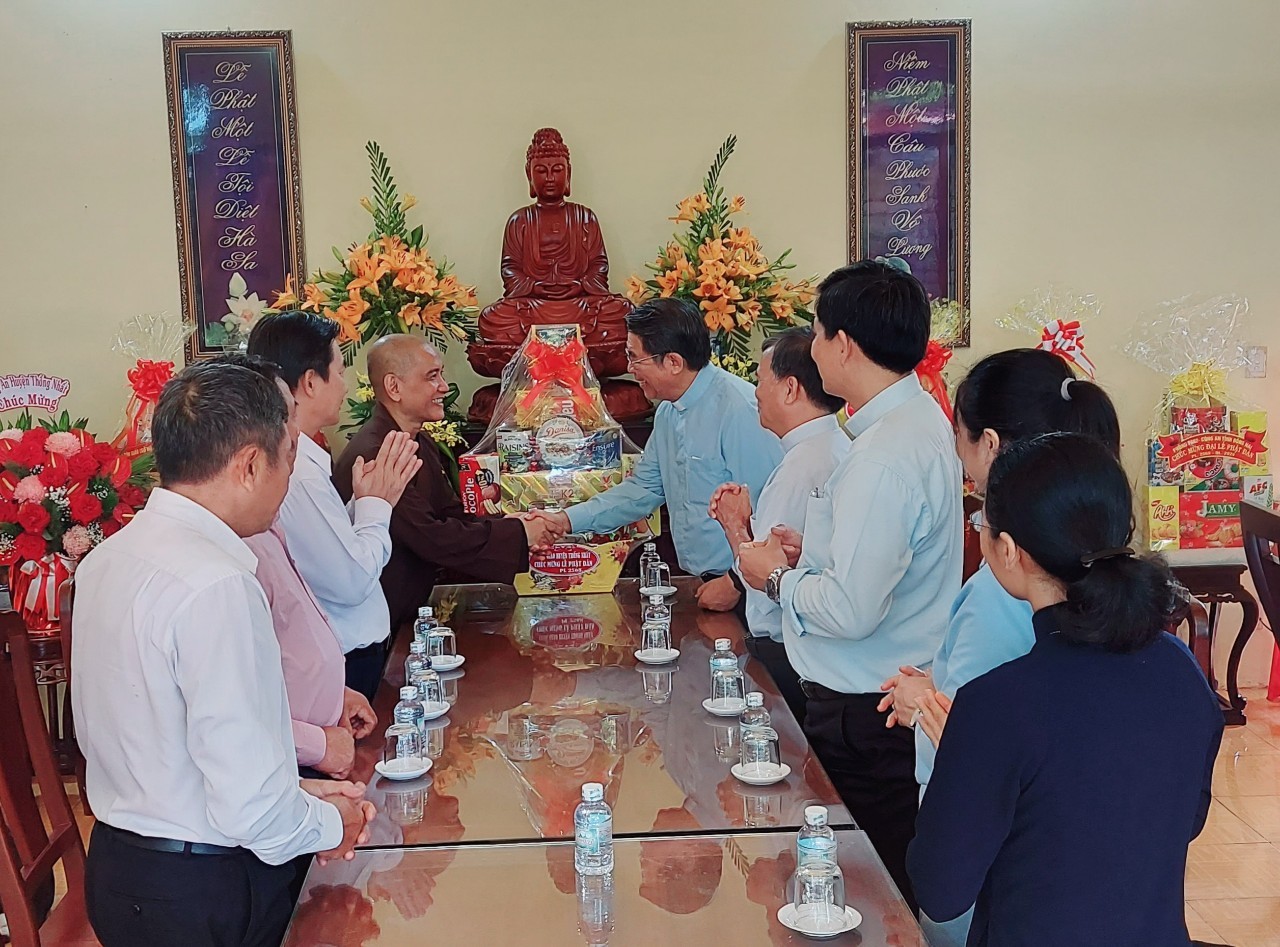 Ban đoàn kết Công giáo huyện đến thăm và chúc mừng Ban trị sự Giáo hội Phật giáo Việt Nam huyện nhân Đại lễ Phật đản năm 2024