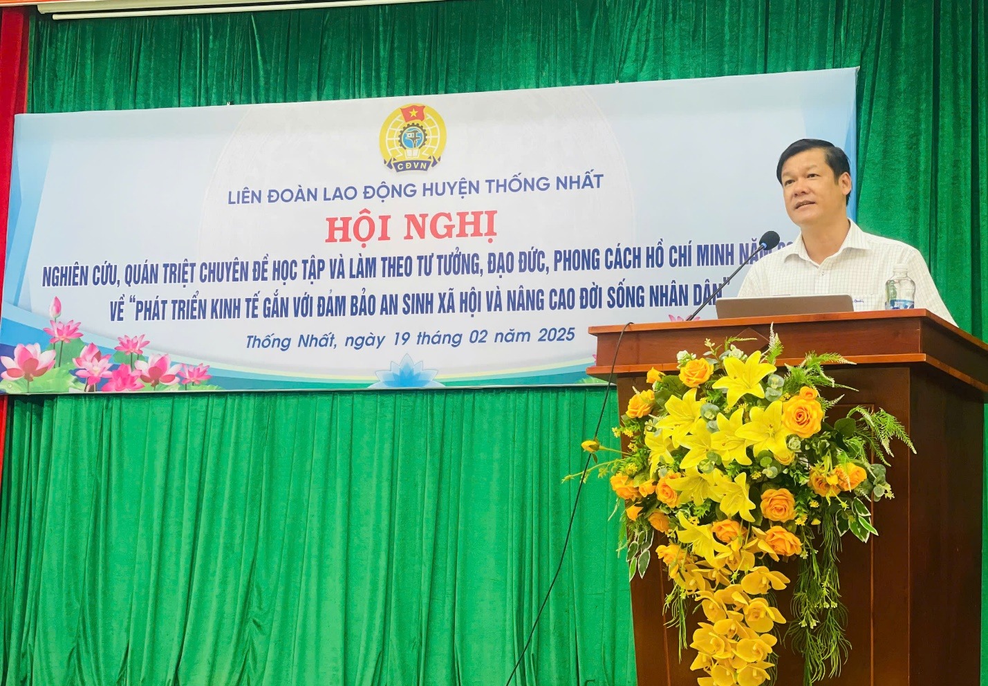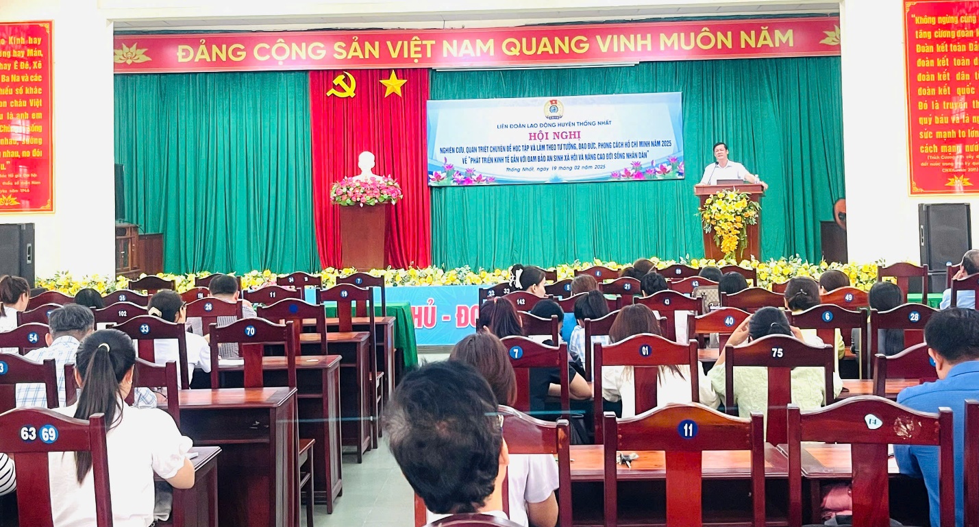 Thông qua Hội nghị nhằm nâng cao nhận thức của cán bộ công đoàn, đoàn viên toàn huyện về tư tưởng đạo đức, phong cách Hồ Chí Minh; nắm vững nội dung cốt lõi tư tưởng, quan điểm của Bác về phát triển kinh tế gắn với đảm bảo an sinh xã hội, nâng cao đời sống Nhân dân để từ đó, có sự thống nhất cao về nhận thức và hành động trong hệ thống công đoàn các cấp; đồng thời khích lệ, tạo động lực, lan tỏa phong trào thi đua lao động sáng tạo học tập, làm theo lời dạy của Bác trong công nhân, viên chức, lao động huyện Thống Nhất.