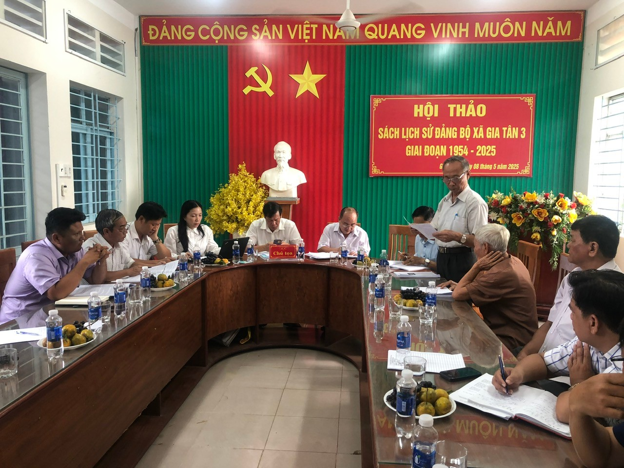 Chiều ngày 08/5/2025, tại Hội trường UBND xã, Đảng ủy xã Gia Tân 3 tổ chức Hội thảo lần 1 đóng góp xây dựng hoàn thiện lịch sử Đảng bộ xã, giai đoạn 1954-2025.