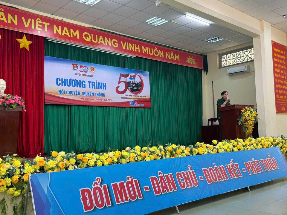 Thiết thực chào mừng kỷ niệm 50 năm Ngày giải phóng miền Nam, thống nhất đất nước, ngày 14/4/2025, Huyện Đoàn Thống Nhất phối hợp cùng với Hội Cựu chiến binh huyện tổ chức buổi nói chuyện truyền thống cho đoàn viên thanh niên.