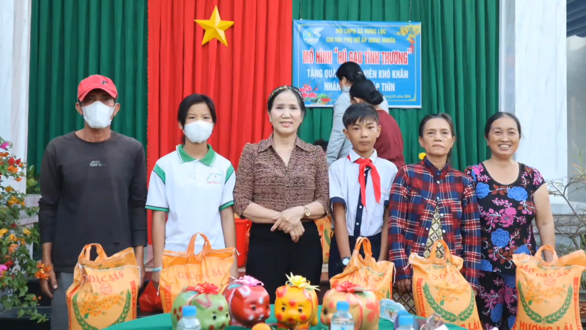 Hũ gạo tình thương được Chi hội phụ nữ ấp Hưng Nghĩa, xã Hưng Lộc thành lập từ năm 2021 với gần 70 thành viên. Đến nay, hũ gạo này đã thu hút hơn 80 thành viên tham gia. Hàng ngày các thành viên trong Chi hội phụ nữ ấp đều dành ra một phần gạo để thực hiện hũ gạo tình thương. Cứ 4 tháng 1 lần, Chi hội phụ nữ ấp lại tổ chức đi thu gom gạo của các thành viên về hũ gạo tình thương.Trung bình một năm hũ gạo tình thương của Chi hội phụ nữ ấp tiết kiệm được khoảng 1,5 tấn gạo để phát cho các hội viên và người có hoàn cảnh khó khăn trên địa bàn ấp vào các dịp rằm tháng bảy, 20/10 và Tết cổ truyền của dân tộc.