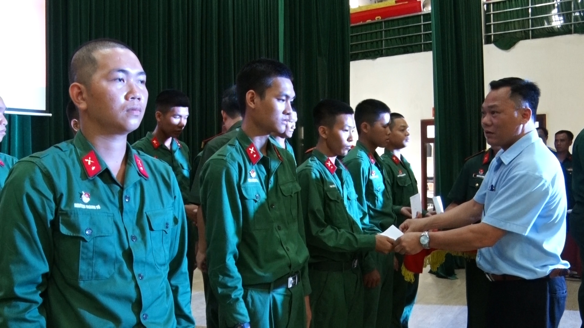 Chủ tịch Ủy ban MTTQ Việt Nam huyện Phạm Đình Ban tặng quà cho các chiến sỹ