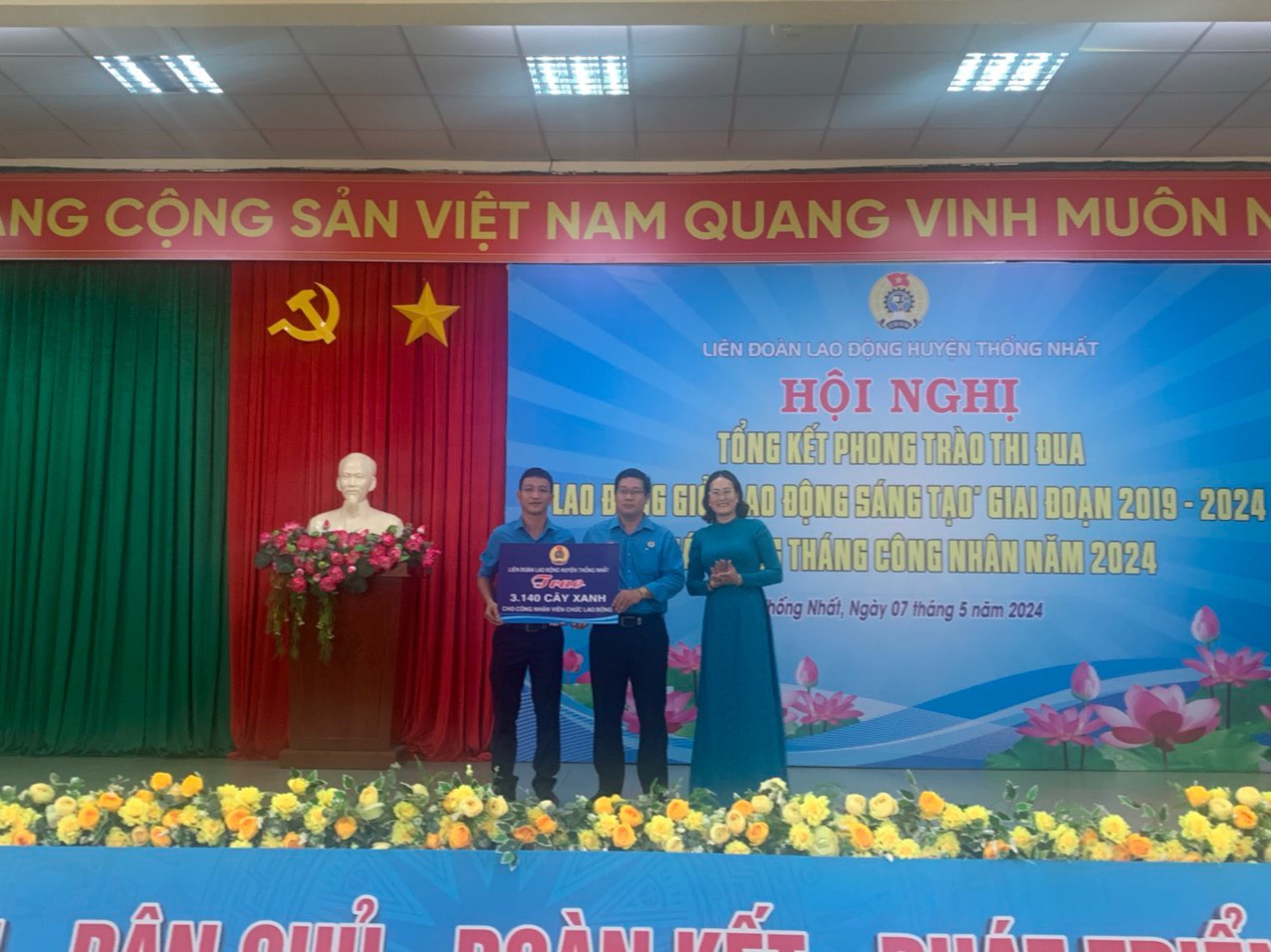 Thực hiện sự chỉ đạo của Thường trực Huyện uỷ về việc triển khai chương trình “Mỗi đoàn viên, hội viên trồng và chăm sóc một cây xanh”; Căn cứ Kế hoạch số 302/KH-UBND ngày 23/4/2024 của Uỷ ban Nhân dân huyện về thực hiện trồng cây xanh năm 2024 trên địa bàn huyện; để nâng cao trách nhiệm các cấp Công đoàn, đoàn viên, công chức, viên chức, người lao động và người dân về vai trò, trách nhiệm của việc trồng cây xanh, trồng rừng, bảo vệ rừng gắn liền với phát triển kinh tế - xã hội trên địa bàn huyện. Qua đó góp phần cải thiện môi trường, cảnh quan nông thôn mới, ứng phó với biến đổi khí hậu, nâng cao chất lượng cuộc sống của người dân, thúc đẩy sự phát triển xanh, bền vững của huyện Thống Nhất nói riêng và của tỉnh Đồng Nai nói chung. Ngày 10/7/2024, Liên đoàn Lao động huyện đã triển khai bàn giao 3.410 cây xanh các loại về có 25 đơn vị Công đoàn cơ sở để trồng và chăm sóc.