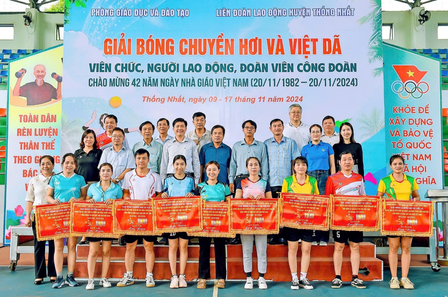 Giải bóng chuyền hơi diễn ra trong không khí đầy hào hứng với sự tham gia của 10 đội tuyển đến từ các cụm trường học. Đây là hoạt động không chỉ mang tính thể thao mà còn thể hiện tinh thần đồng đội, sức khỏe dẻo dai của các thầy cô giáo. Các đội tuyển đã cống hiến cho khán giả những trận đấu gay cấn, quyết liệt nhưng cũng đầy tình đồng nghiệp và sự đoàn kết. Giải bóng chuyền hơi là một sân chơi bổ ích, giúp các thầy cô giải tỏa căng thẳng sau những giờ dạy học căng thẳng, đồng thời tăng cường thể chất, nâng cao sức khỏe. Mỗi trận đấu không chỉ là cơ hội để các giáo viên thể hiện kỹ năng và sự nhiệt huyết, mà còn là dịp để giao lưu, học hỏi và chia sẻ những kinh nghiệm trong công tác giảng dạy. Song song với Giải Bóng Chuyền Hơi, Giải Việt Giã cũng thu hút sự tham gia của 700 đoàn viên và giáo viên, là cơ hội để các thầy cô giáo thể hiện sự bền bỉ và sức mạnh ý chí trong những cuộc đua đường dài.