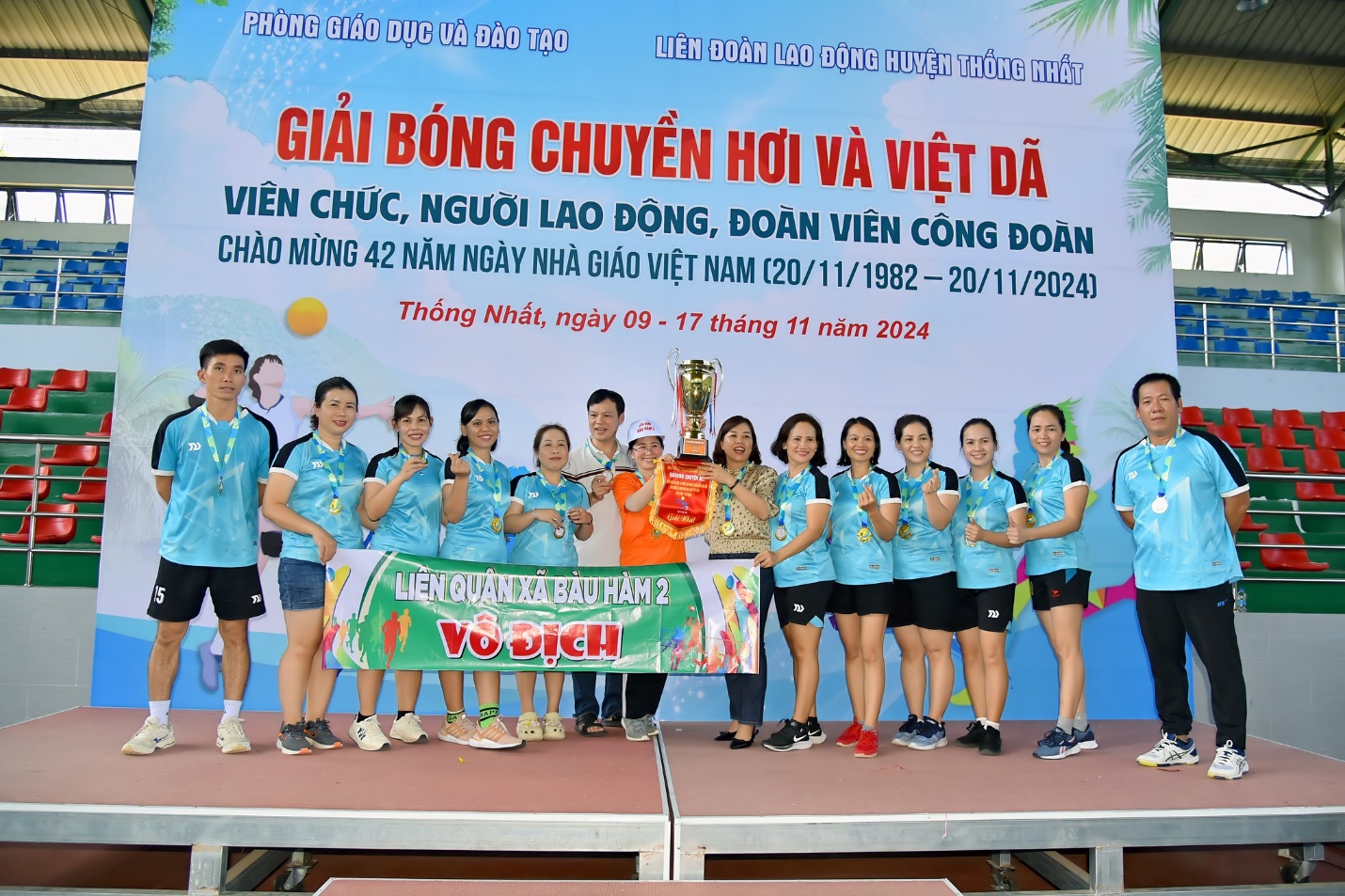 Đội bóng chuyền hơi các trường học trên địa bàn xã bàu Hàm 2, nhận giải nhất chung cuộc