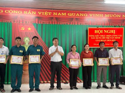 Hình ảnh khen thưởng các tập thể và cá nhân tại Hội nghị tổng kết thực hiện công tác xây dựng đô thị văn minh giai đoạn 2019-2025