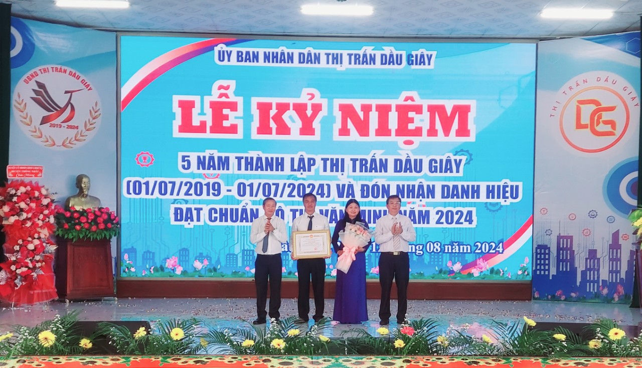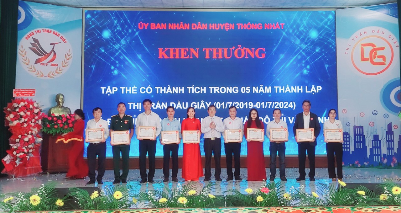 Dịp này, nhiều tập thể và cá nhân có thành tích xuất sắc trong xây dựng thị trấn Dầu Giây đạt đô thị văn minh đã được biểu dương khen thưởng.