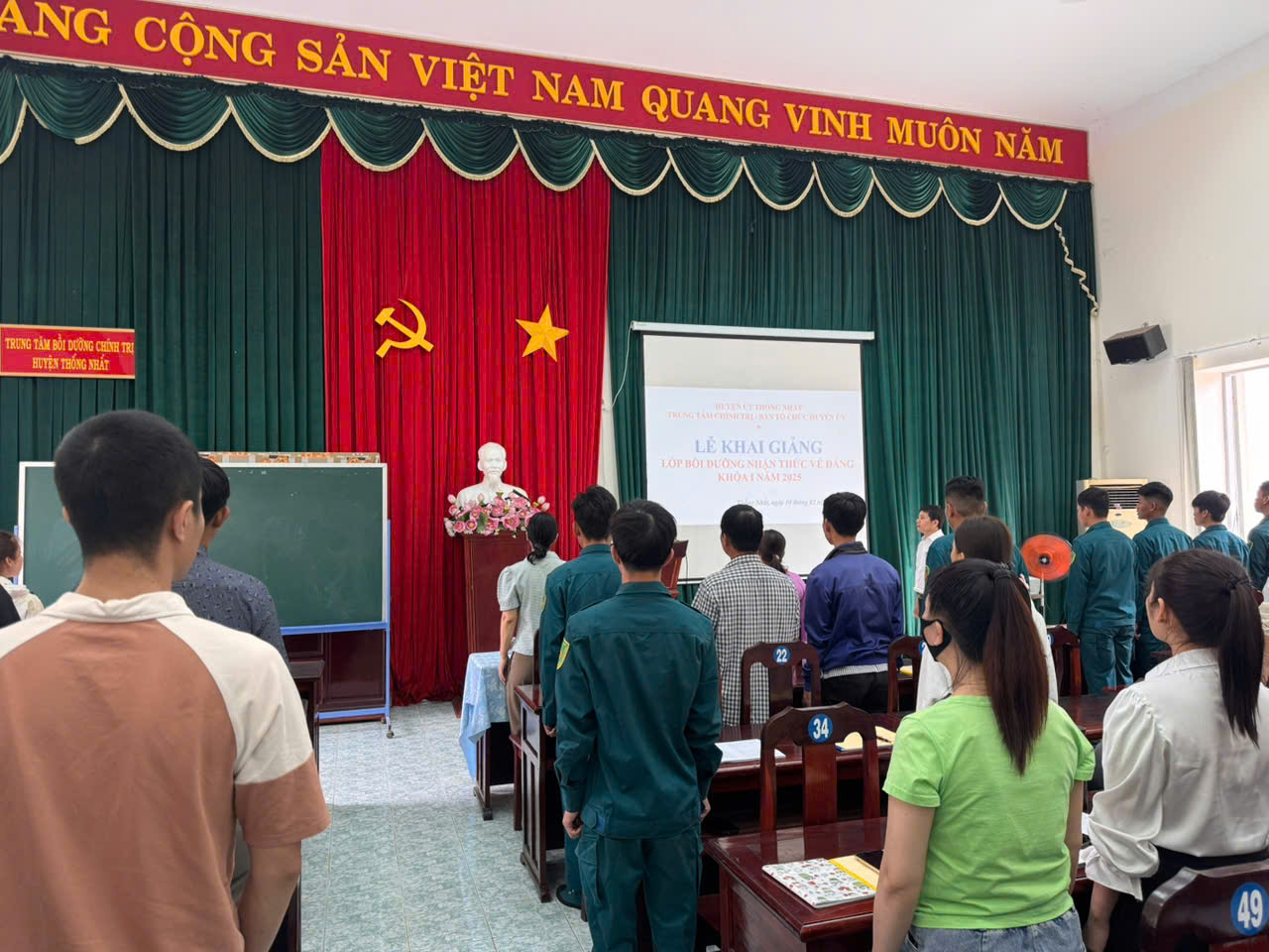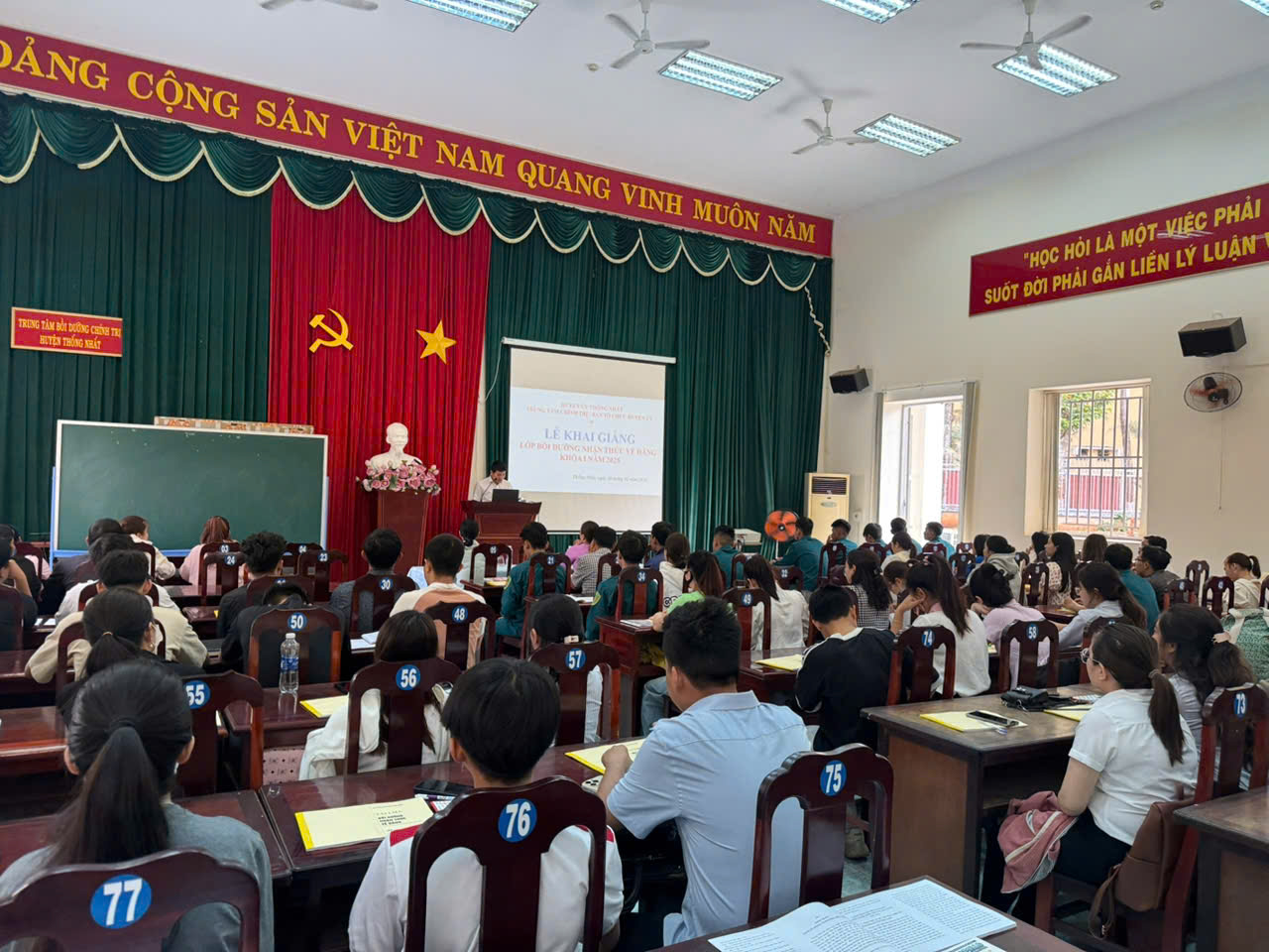 Sáng ngày 10/02/2025, Trung tâm Chính trị huyện phối hợp với Ban Tổ chức Huyện ủy khai giảng lớp Bồi dưỡng nhận thức về Đảng khóa I, năm 2025. Tham dự có các đồng chí: Đồng chí Nguyễn Thị Việt – HUV, Phó Trưởng Ban Tổ chức Huyện ủy; Đồng chí Huỳnh Thị Kim Xuyến– Phó Giám đốc Trung tâm Chính trị huyện.