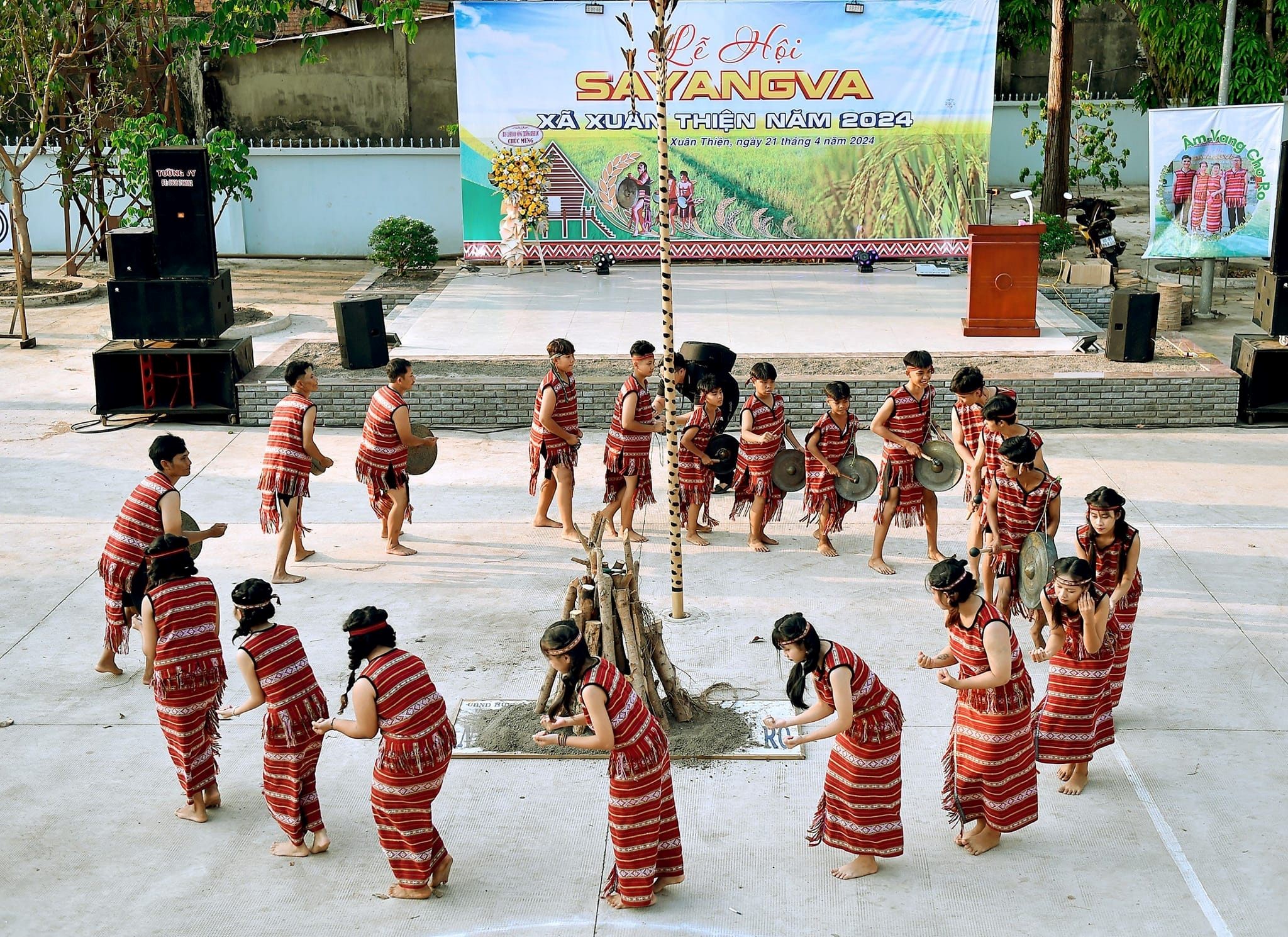 Biểu diễn cồng chiêng tại Lễ hội Sayangva xã Xuân Thiện, huyện Thống Nhất