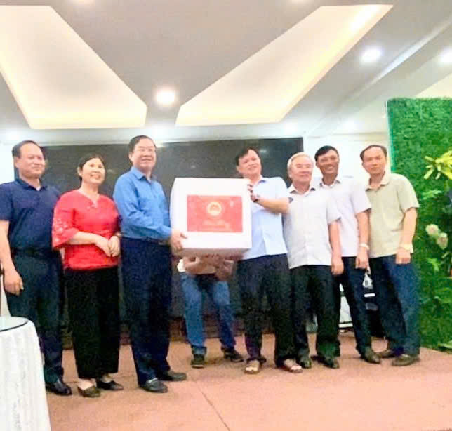 Trưởng ban Ban Dân vận Tỉnh ủy Đồng Nai (thứ tư từ phải sang) nhận quà lưu niệm của Trưởng ban Ban Dân vận Tỉnh ủy Điện Biên - Trưởng đoàn công tác
