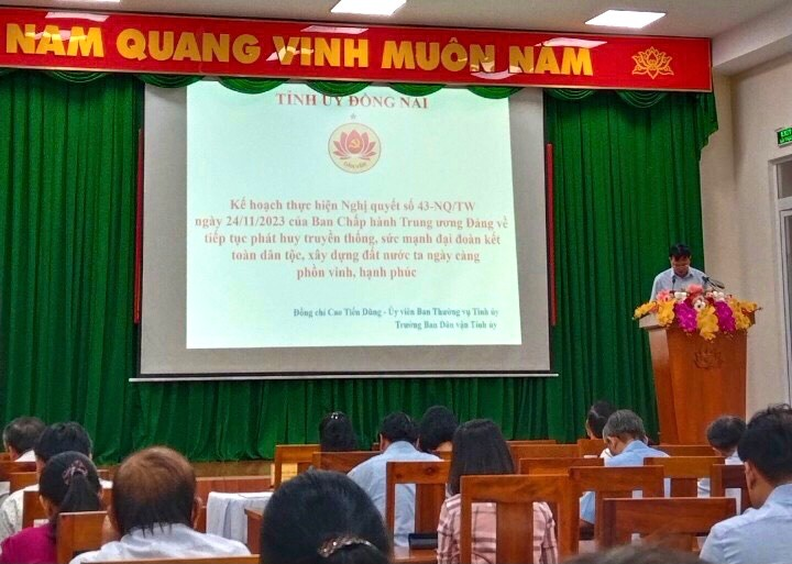 Để tiếp tục thực hiện tốt những kết quả đã đạt được, khắc phục được những tồn tại, hạn chế nêu trên, ngay sau khi Ban Chấp hành Trung ương Đảng (khóa XIII) ban hành Nghị quyết số 43-NQ/TW, ngày 24/11/2023; Ban Chấp hành Đảng bộ tỉnh đã ban hành Kế hoạch số 330-KH/TU, ngày 19/3/2024 về việc thực hiện Nghị quyết số 43-NQ/TW của Ban Chấp hành Trung ương Đảng (khóa XIII) về tiếp tục phát huy truyền thống, sức mạnh ĐĐKTDT, xây dựng đất nước ta ngày càng phồn vinh, hạnh phúc và triển khai sâu rộng trên địa bàn tỉnh Đồng Nai, để các cấp ủy, tổ chức đảng, chính quyền, Mặt trận Tổ quốc, các tổ chức chính trị - xã hội, các hội quần chúng, cán bộ, đảng viên, công chức, viên chức, đoàn viên, hội viên và Nhân dân nhận thức sâu sắc về quan điểm, mục tiêu, nhiệm vụ về phát huy truyền thống, sức mạnh ĐĐKTDT, tăng cường đồng thuận xã hội, khơi dậy mạnh mẽ tinh thần yêu nước, ý chí tự cường dân tộc, niềm tin, khát vọng cống hiến và xây dựng đất nước ngày càng phồn vinh, hạnh phúc; từ đó, xác định rõ nhiệm vụ, trách nhiệm và đề ra nhiệm vụ, giải pháp cụ thể thực hiện hiệu quả Nghị quyết số 43-NQ/TW của Ban Chấp hành Trung ương Đảng (khóa XIII) trên địa bàn tỉnh.