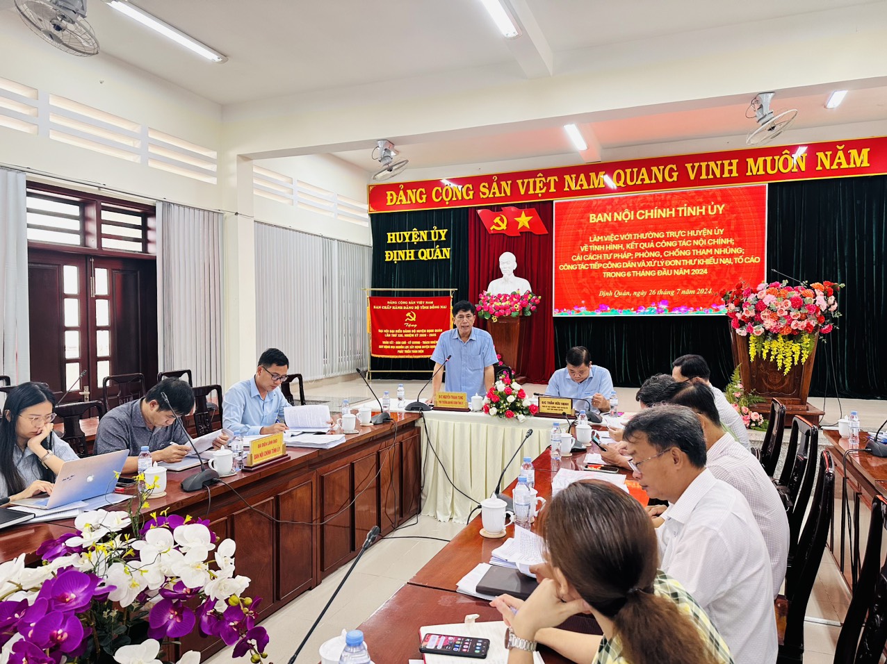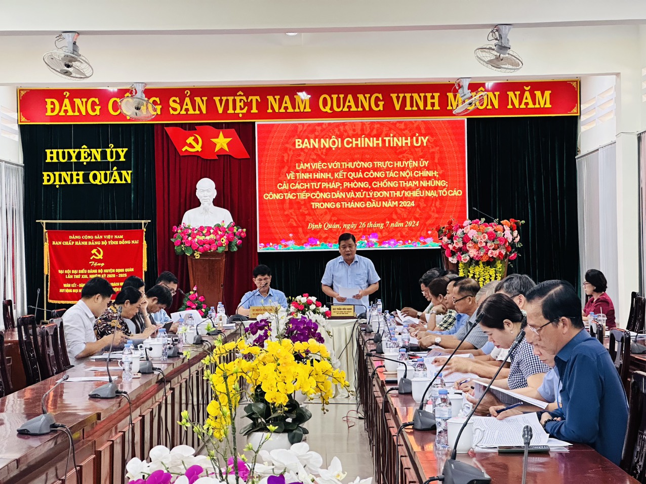 Các đồng chí: Nguyễn Thanh Tùng, Phó Trưởng ban Nội chính Tỉnh ủy và Trần Hữu Hạnh, Phó Bí thư Thường trực Huyện ủy Định Quán chủ trì buổi làm việc. Dự và chỉ đạo buổi làm việc có đồng chí Trần Trung Nhân, UVTVTU, Trưởng Ban Nội chính Tỉnh ủy, cùng dự có lãnh đạo các phòng của Ban Nội chính Tỉnh ủy, lãnh đạo các cơ quan khối nội chính huyện Định Quán và các cơ quan có liên quan của địa phương.