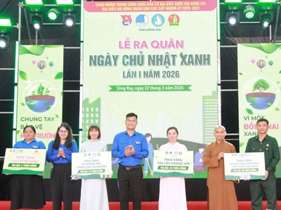 Tỉnh đoàn tổ chức Lễ ra quân Ngày Chủ nhật xanh lần thứ I năm 2026 2 Sáng 21-3, tại Trung tâm Văn hóa thể thao - Học tập cộng đồng xã Sông Ray, Tỉnh đoàn, Hội Liên hiệp thanh niên (LHTN) tỉnh Đồng Nai đã phối hợp với Đảng ủy, HĐND, UBND, Ủy ban MTTQ Việt Nam xã Sông Ray tổ chức Lễ ra quân Ngày Chủ nhật xanh lần thứ I năm 2026.