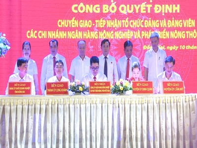 Chuyển giao, tiếp nhận các tổ chức đảng và đảng viên các chi nhánh Ngân hàng Nông nghiệp và Phát triển Nông thôn Việt Nam trên địa bàn tỉnh Đồng Nai 185 Chuyển giao, tiếp nhận các tổ chức đảng và đảng viên các chi nhánh Ngân hàng Nông nghiệp và Phát triển Nông thôn Việt Nam trên địa bàn tỉnh Đồng Nai