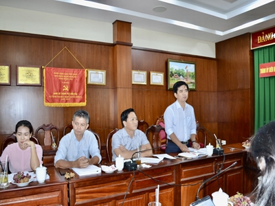 Đồng chí Quản Minh Cường, Phó Bí thư Tỉnh ủy, Trưởng Đoàn đại biểu Quốc hội tỉnh giám sát việc thực hiện chính sách, pháp luật về quản lý, sử dụng đất đai tại nông trường Ban Quản lý rừng phòng hộ giai đoạn 2019-2023 tại Ủy ban nhân dân huyện Xuân Lộc
