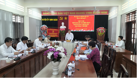 Sáng ngày 29/8/2023, Ban Chỉ đạo chỉnh lý, bổ sung, biên soạn mới Lịch sử Đảng bộ huyện Định Quán, giai đoạn 1945-2020 đã tổ chức họp triển khai công tác biên tập, biên soạn rà soát, bổ sung, chỉnh sửa và góp ý bản thảo cuốn Lịch sử Đảng bộ huyện, giai đoạn 1945-2020. Tham dự hội nghị có đồng chí Trần Quang Toại, Chủ tịch Hội Khoa học Lịch sử tỉnh Đồng Nai và các đồng chí thành viên Ban Chỉ đạo. Đồng chí Trần Bá Đạt, TUV, Bí thư Huyện ủy Định Quán, Trưởng Ban Chỉ đạo chủ trì cuộc họp.