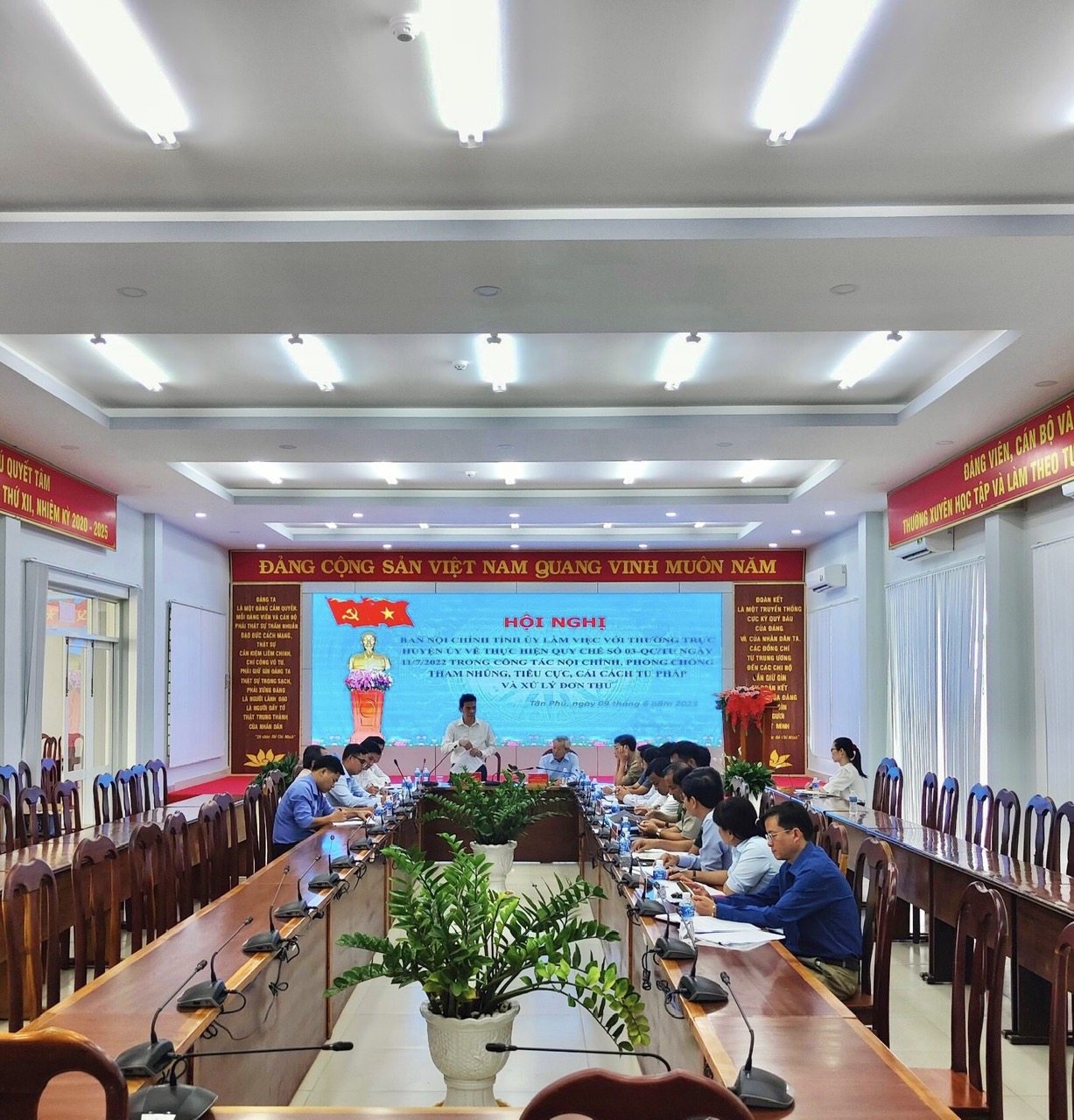 Quang cảnh buổi làm việc giữa Ban Nội chính Tỉnh ủy với Huyện uỷ Tân Phú