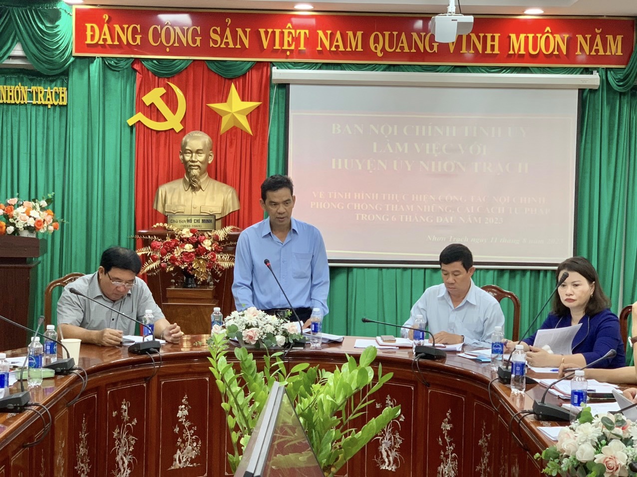 Quang cảnh buổi làm việc giữa Ban Nội chính Tỉnh ủy với Huyện uỷ Nhơn Trạch