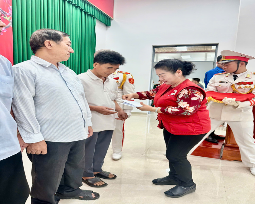 Bà Đỗ Thị Phước Thiện, Chủ tịch Hội Chữ Thập đỏ tỉnh trao quà