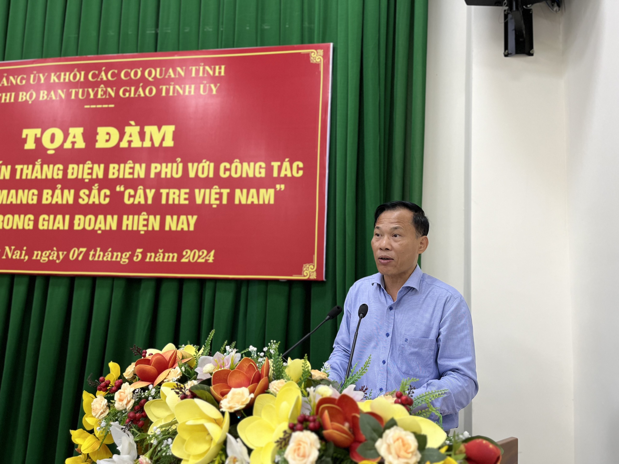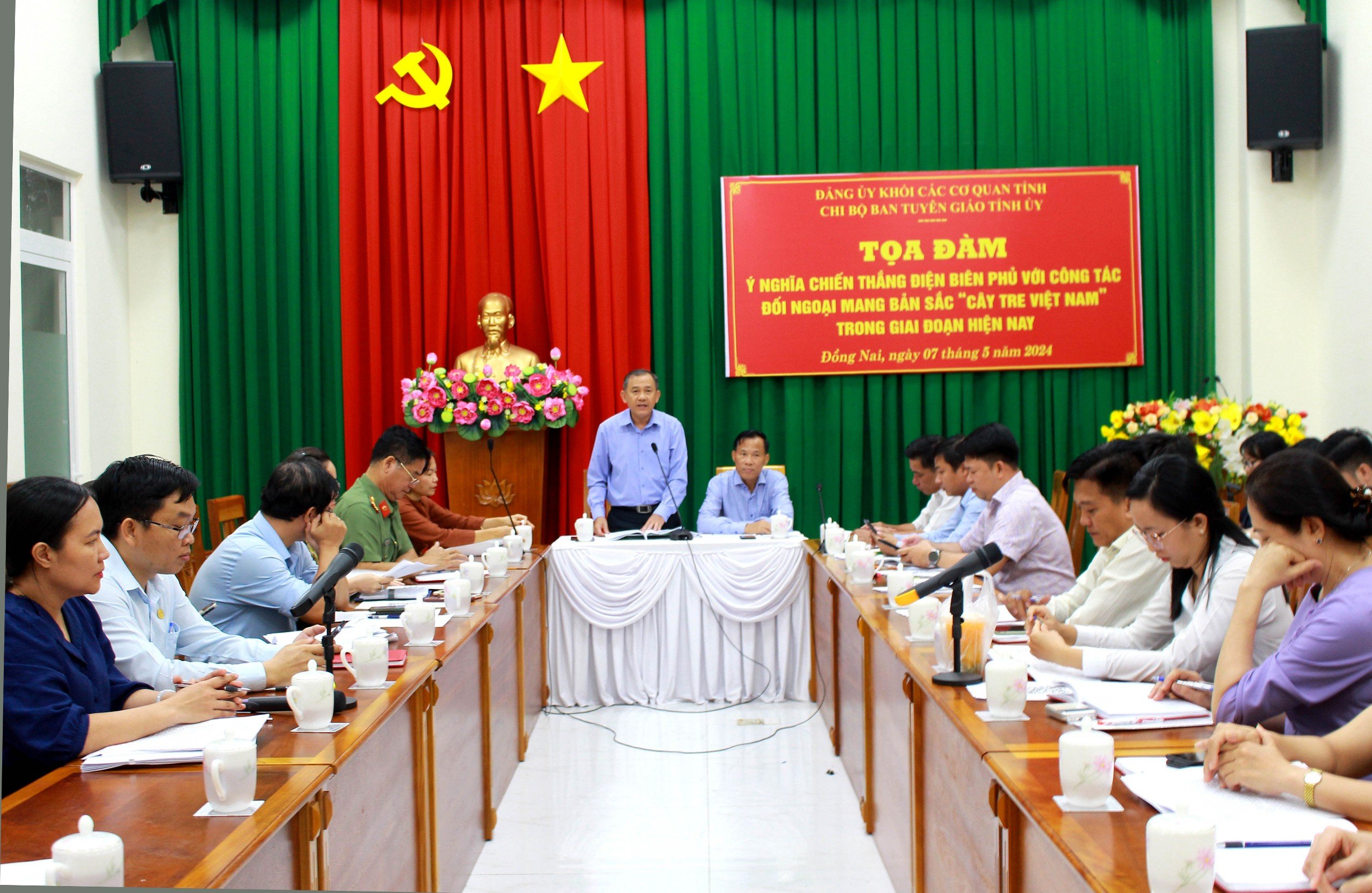 Nhằm tạo diễn đàn nghiên cứu, trao đổi về ý nghĩa to lớn của chiến dịch Điện Biên Phủ cũng như về chủ trương, đường lối đối ngoại của Đảng qua nội dung tác phẩm của đồng chí Tổng Bí thư Nguyễn Phú Trọng, góp phần bảo vệ nền tảng tư tưởng, hình ảnh, uy tín của Đảng và đất nước, làm thất bại mọi âm mưu chống phá, hành vi xuyên tạc, bôi xấu của các thế lực thù địch, phản động, bất mãn, cơ hội chính trị về ý nghĩa to lớn của chiến thắng Điện Biên Phủ (07/5/1954), về đường lối, chính sách đối ngoại của Đảng, Nhà nước ta; chiều ngày 07/5/2024, chi bộ Ban Tuyên giáo Tỉnh ủy tổ chức Tọa đàm với chủ đề “Ý nghĩa chiến thắng Điện Biên Phủ với công tác đối ngoại mang bản sắc “Cây tre Việt Nam” trong giai đoạn hiện nay”.