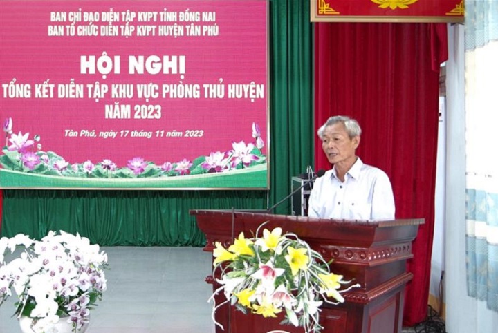 Ngày 17/11/2023, Ban tổ chức diễn tập KVPT huyện Tân Phú năm 2023 tổ chức tổng kết diễn tập, nhằm đánh giá, rút kinh nghiệm quá trình chuẩn bị, tổ chức chỉ đạo, thực hành diễn tập và khen thưởng những tập thể, cá nhân có thành tích xuất sắc trong diễn tập KVPT huyện Tân Phú. Tham dự Hội nghị có đồng chí Nguyễn Trung Thành - TUV, Bí thư Huyện ủy, Trưởng ban tổ chức diễn tập KVPT huyện Tân Phú năm 2023; Thượng tá Huỳnh Công Tới - Phó Chỉ huy trưởng, Tham mưu trưởng Bộ Chỉ huy Quân sự tỉnh; đồng chí Trịnh Văn Luận - Phó Bí thư Thường trực Huyện ủy, Chủ tịch HĐND huyện; đồng chí Nguyễn Hữu Ký - Phó Bí thư, Chủ tịch UBND huyện.