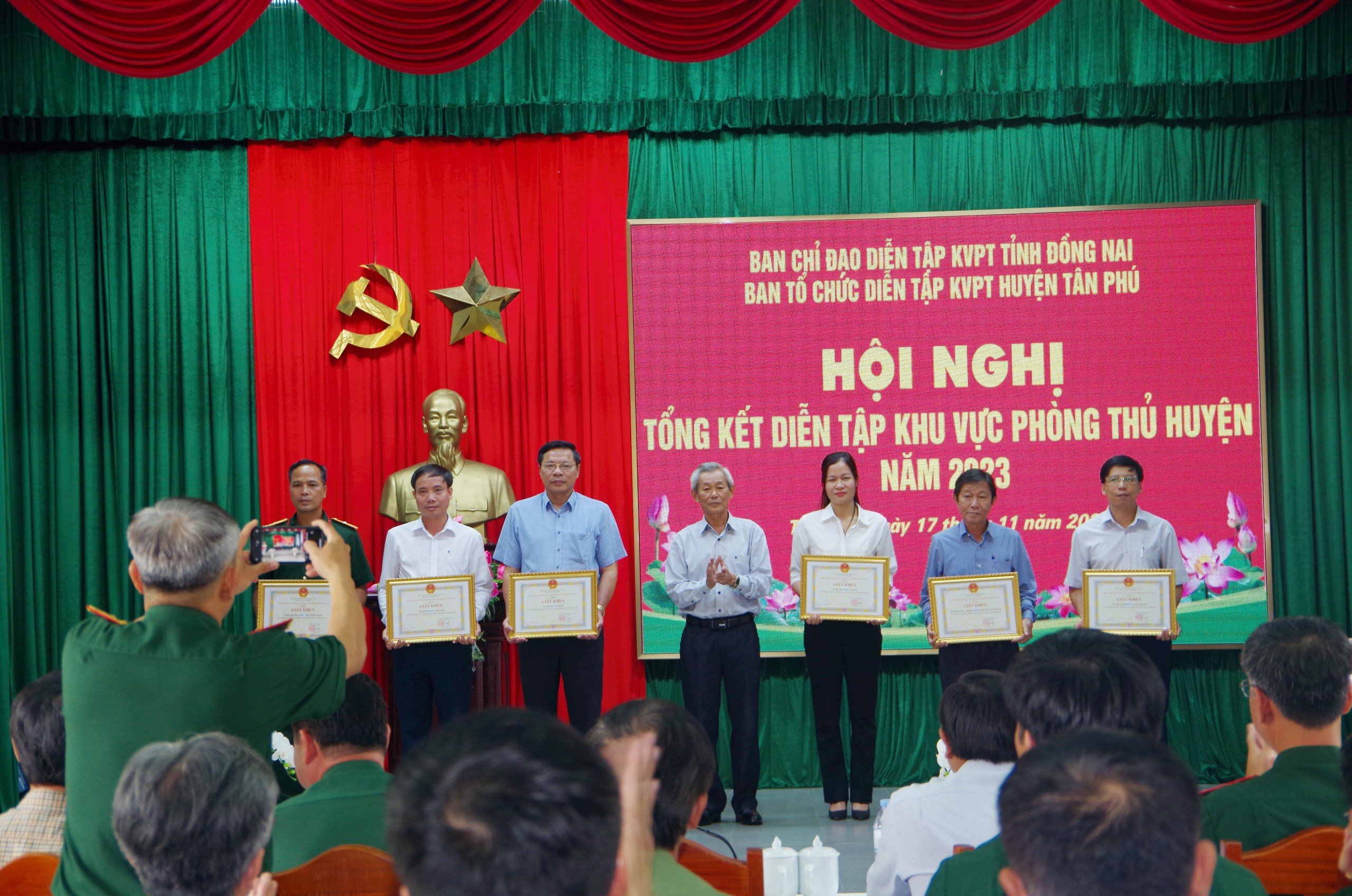 Cuộc diễn tập KVPT huyện Tân Phú năm 2023 đã hoàn thành xuất sắc nhiệm vụ, bảo đảm an toàn tuyệt đối về người, vũ khí trang bị. Ban tổ chức diễn tập KVPT huyện Tân Phú đã trao giấy khen cho 15 tập thể, 38 cá nhân có thành tích xuất sắc trong công tác diễn tập khu vực phòng thủ năm 2023.
