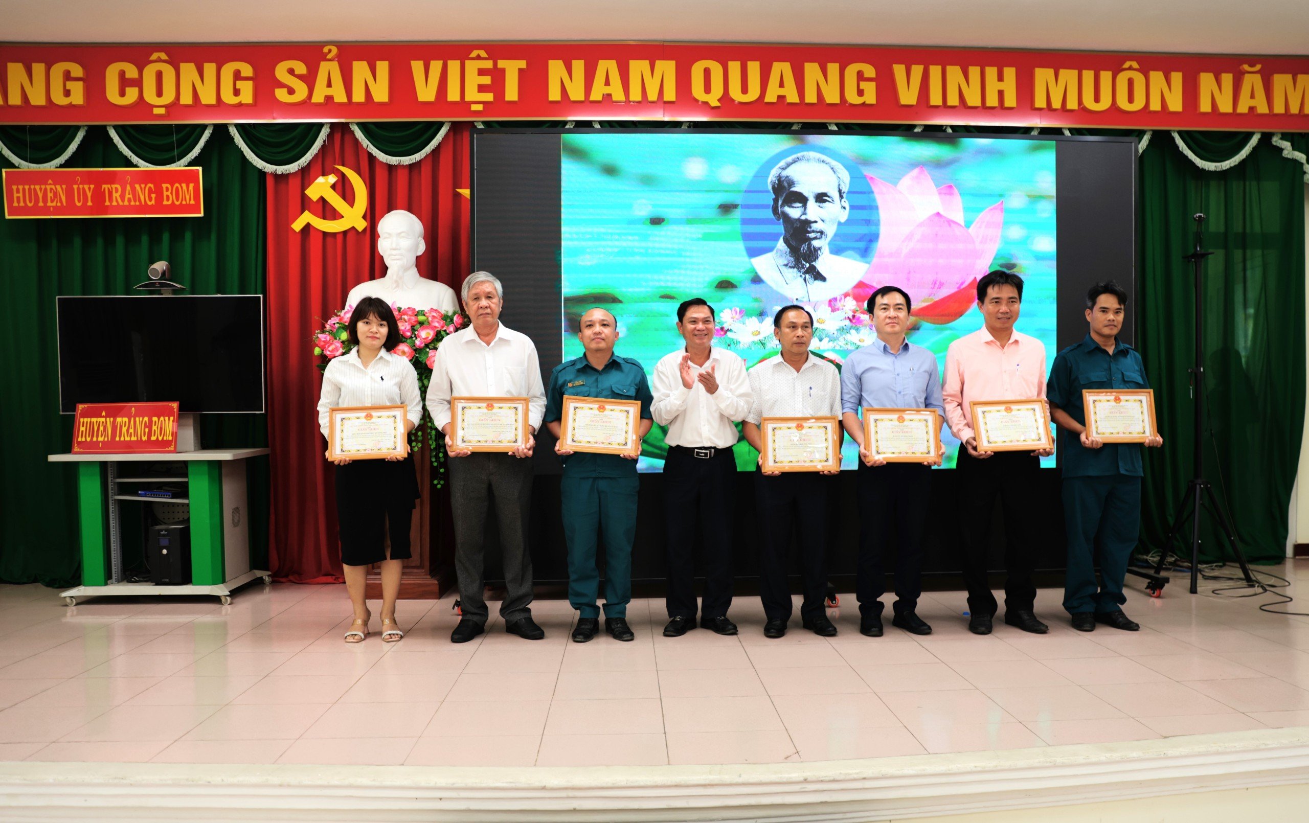 Đồng chí Lê Tuấn Anh - TUV, Bí thư Huyện ủy Trảng Bom trao khen cho các tập thể có thành tích xuất sắc trong học tập và làm theo tư tưởng, đạo đức, phong cách Hồ Chí Minh