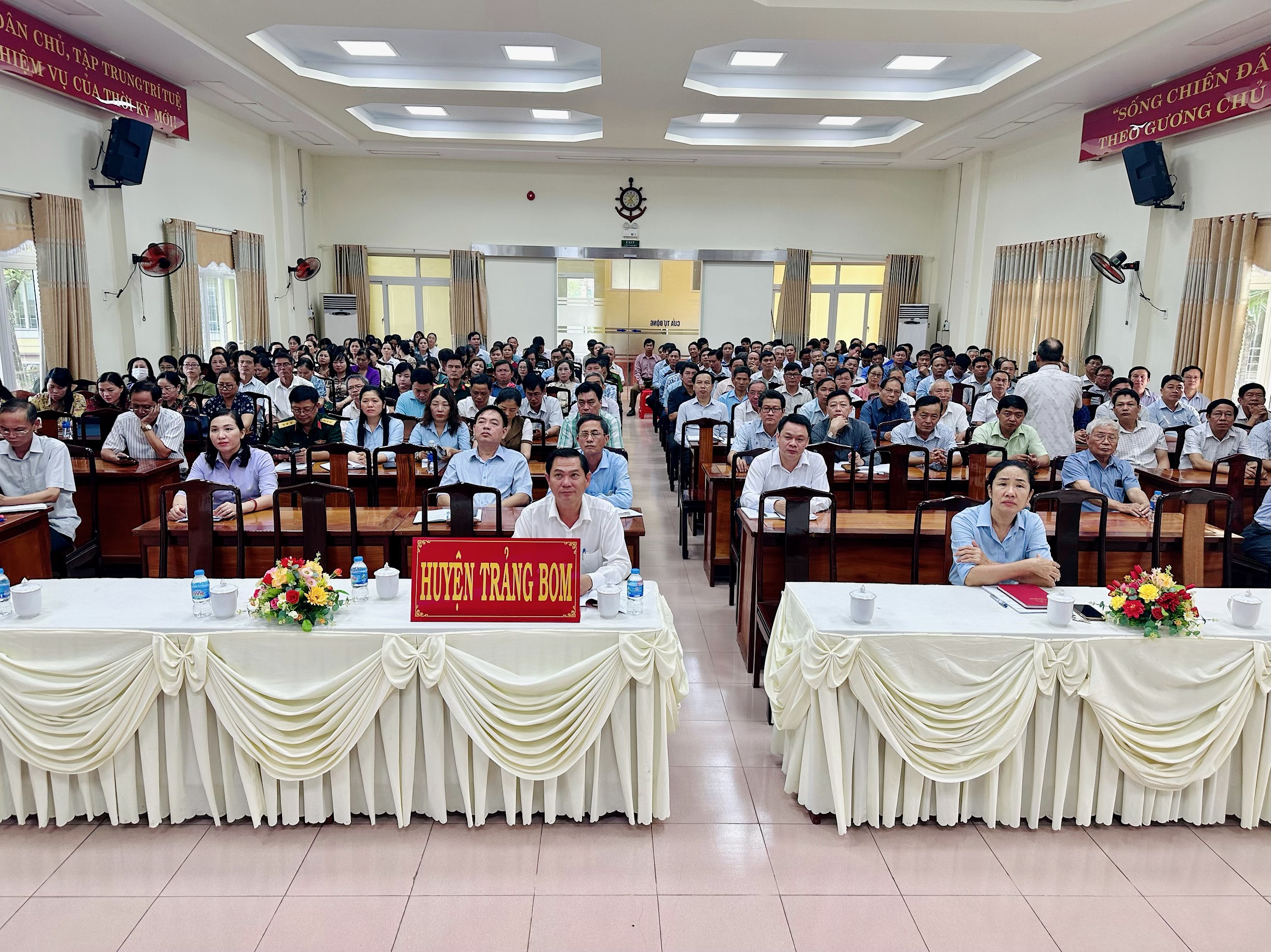 Dự tại điểm cầu huyện Trảng Bom có các đồng chí nguyên Bí thư, Phó Bí thư và Ủy viên Ban Thường vụ Huyện ủy đang sinh sống trên địa bàn huyện; Thường trực Huyện ủy, HĐND, UBND, UB.MTTQ huyện; các đồng chí Ủy viên Ban Chấp hành Đảng bộ huyện (khóa IV); Bí thư các Chi, Đảng bộ cơ sở; Chủ tịch HĐND, UBND và Phó Ban Tuyên giáo chuyên trách các xã, thị trấn; Bí thư chi bộ ấp, khu phố thuộc các xã, thị trấn; Trưởng các cơ quan, ban, ngành, đoàn thể, các Ban HĐND huyện, Trưởng các tổ chức hội; Trưởng, Phó Công an huyện, Ban Chỉ huy Quân sự huyện, Trung tâm Chính trị huyện; Ủy viên Ủy ban Kiểm tra Huyện ủy; Các đồng chí Báo cáo viên Huyện ủy; Hiệu trưởng các trường phổ thông trung học, trung học cơ sở, tiểu học, mầm non trên địa bàn huyện.