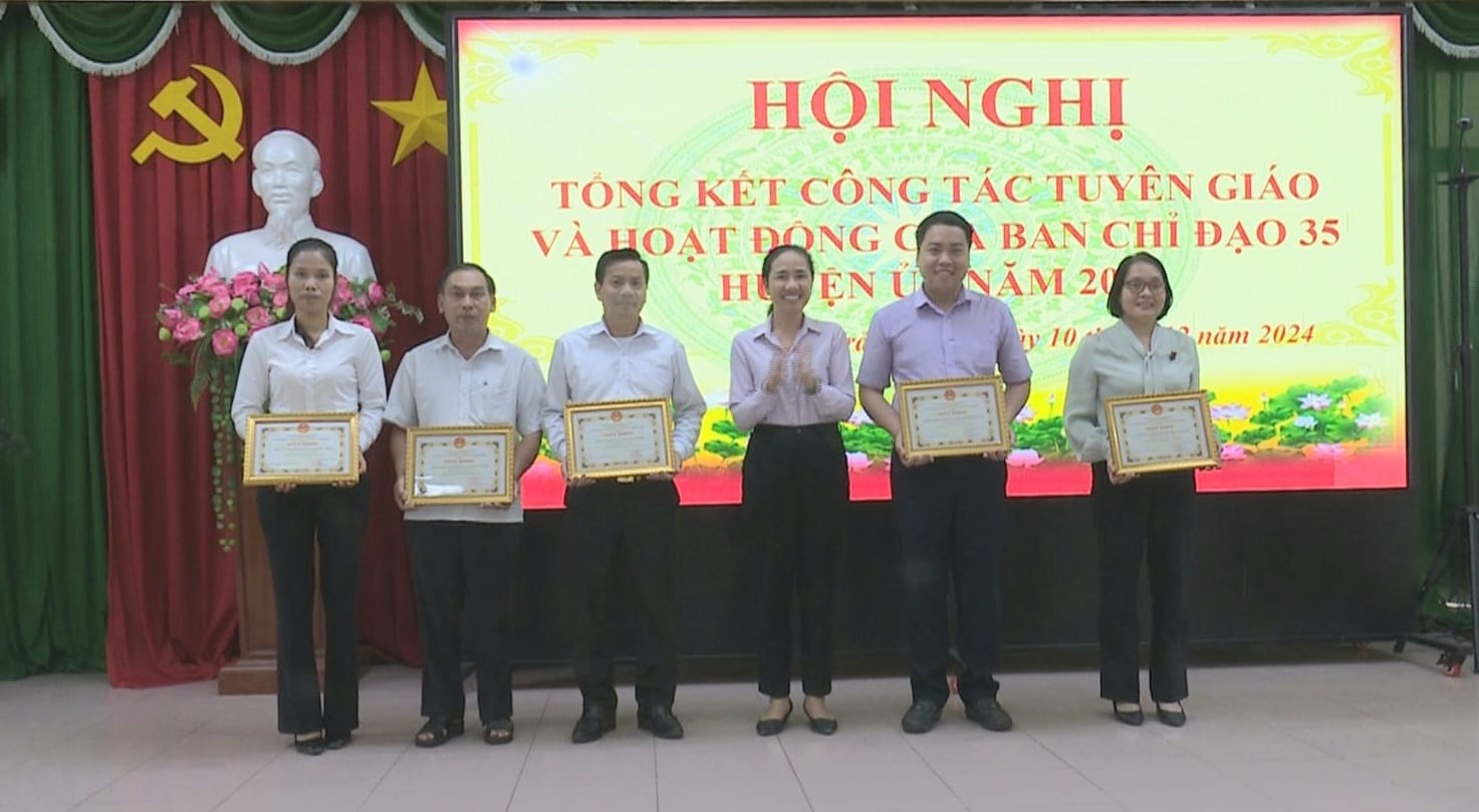 Cũng tại hội nghị, Ban chỉ đạo 35 Huyện ủy đã tổ chức tổng kết hoạt động năm 2024, triển khai nhiệm vụ năm 2025. Trong năm qua, Thường trực Huyện ủy, BCĐ 35 huyện đã tích cực và thường xuyên chỉ đạo các cấp, ngành tăng cường thực hiện các nhiệm vụ công tác tuyên truyền các chủ trương, đường lối của Đảng, chính sách pháp luật của Nhà nước, các sự kiện chính trị của đất nước, địa phương. Nhận thức của các cấp ủy đảng, cơ quan, đơn vị, cán bộ, đảng viên về vai trò của công tác bảo vệ nền tảng tư tưởng của Đảng ngày càng được nâng lên. Đồng thời, chủ động, kịp thời nắm bắt tình hình tư tưởng, dư luận xã hội tại cơ sở. Công tác phối hợp trong đấu tranh phản bác các quan điểm sai trái, thù địch, bảo vệ nền tảng tư tưởng của Đảng trên không gian mạng được tăng cường. Các chi, đảng bộ, cơ quan, đơn vị, MTTQ, các đoàn thể, trường học đã thành lập các trang, nhóm mạng xã hội. Qua đó, tích cực chia sẻ, lan tỏa những thông tin chính thống, gương người tốt, việc tốt; kịp thời đấu tranh, phản bác thông tin sai trái, xuyên tạc, sai sự thật trên không gian mạng.
