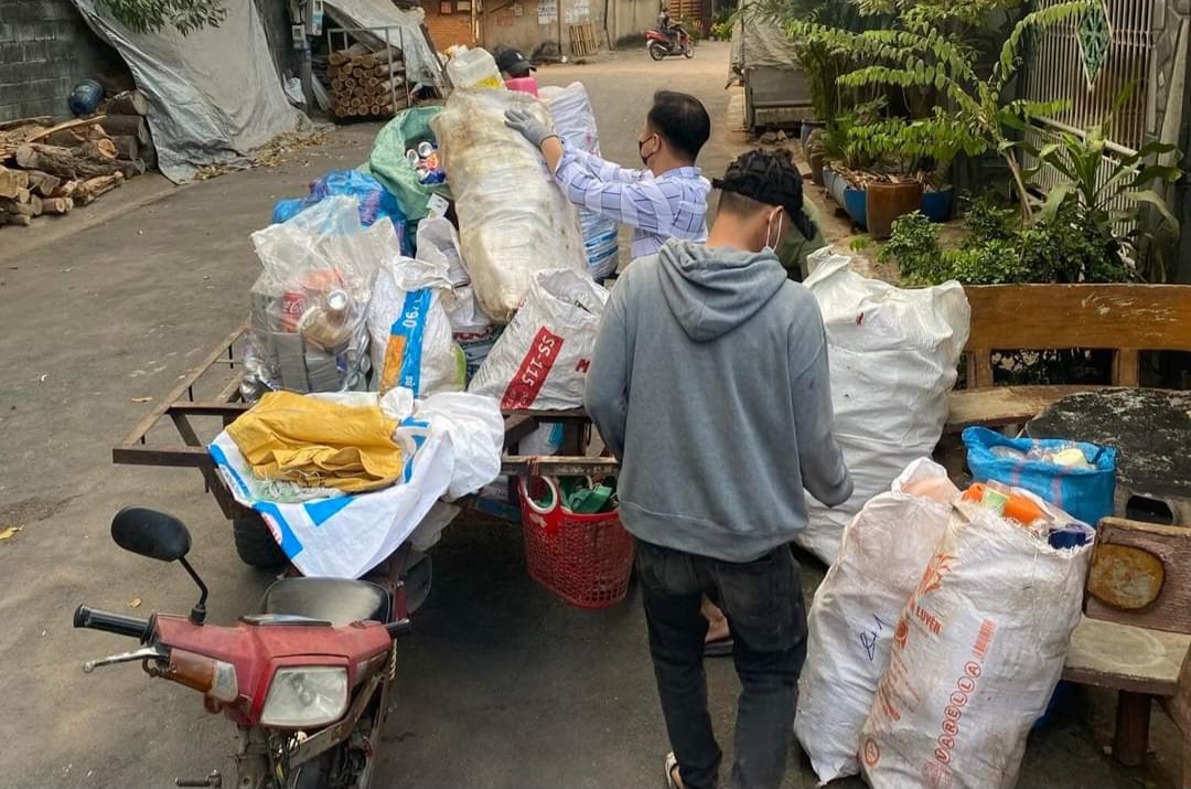 Các bạn trong Ban Giới trẻ đi gom “Ve chai” ờ các gia đình