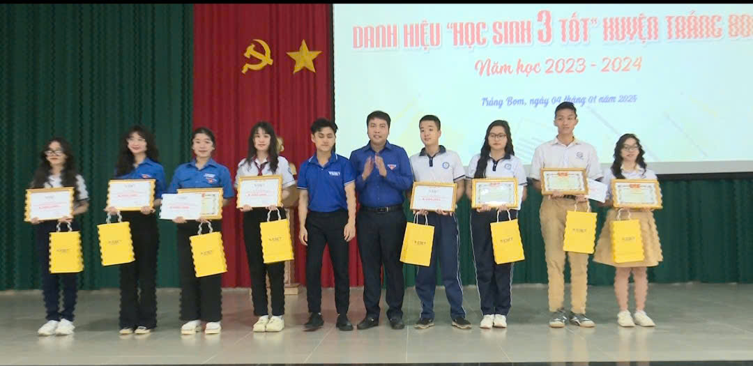 Hình: khen thưởng cho các cho học sinh đạt danh hiệu “Học sinh “3 tốt”
