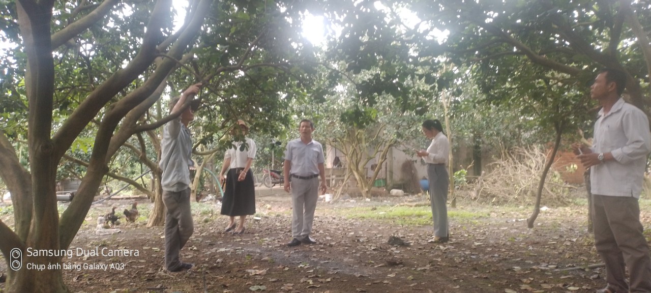 Đoàn thăm vườn Bưởi hồng da xanh 8 năm tuổi sản xuất theo hướng hữu cơ tại ấp Hưng Bình, xã Hưng Thịnh