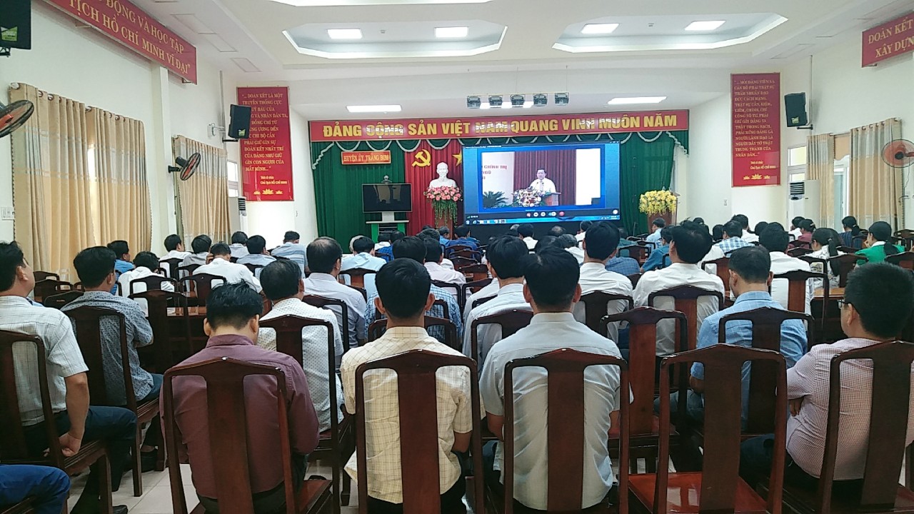 Sáng ngày 10/5/2024, Ban Thường vụ Huyện ủy Trảng Bom tổ chức quán triệt và triển khai thực hiện Nghị quyết số 41-NQ/TW ngày 10/10/2023 của Bộ Chính trị về “Xây dựng và phát huy vai trò của đội ngũ doanh nhân Việt Nam trong thời kỳ mới’’ cho các đồng chí UV BCH Đảng bộ huyện (khóa IV), Bí thư các chi, đảng bộ cơ sở; Trưởng, các cơ quan, ban, ngành, đoàn thể, các Ban HĐND huyện; Trưởng các Tổ chức Hội; Các đồng chí Báo cáo viên Huyện ủy; Các đồng chí Ủy viên Ủy ban Kiểm tra Huyện ủy, Chủ tịch HĐND-UBND các xã, thị trấn; Phó Ban Tuyên giáo chuyên trách các xã, thị trấn bằng hình thức trực tuyến kết nối từ điểm cầu Trung ương.