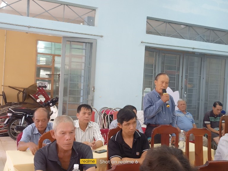 Ông Sầm A Sáng-cử tri ấp Thuận An phát biểu ý kiến tại buổi tiếp xúc cử tri