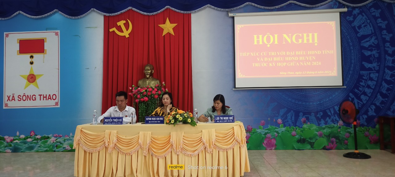 Chiều ngày 12/6/2024, tại Hội trường UBND xã Sông Thao; Ủy Ban MTTQ xã Sông Thao chủ trì phối hợp với HĐND xã Sông Thao tổ chức hội nghị tiếp xúc cử tri với đại biểu HĐND Tỉnh và HĐND Huyện trước kỳ họp lần thứ 18 HĐND tỉnh (khóa X), kỳ họp thường lệ giữa năm 2024 của HĐND huyện khóa IV, nhiệm kỳ 2021 – 2026. Dự buổi tiếp xúc, đại biểu HĐND tỉnh có bà Huỳnh Ngọc Kim Mai - Thường trực HĐND, Trưởng ban Văn hóa - xã hội tỉnh, đại biểu HĐND tỉnh Đồng Nai; đại biểu HĐND huyện có bà Lưu Thị Ngọc Quế – Huyện ủy viên, Phó Chủ tịch HĐND huyện, ông Nguyễn Thiện Vũ – Tổ trưởng tổ đại biểu đơn vị số 8 HĐND huyện; lãnh đạo địa phương có ông Trần Văn Toàn - Bí thư Đảng ủy xã.