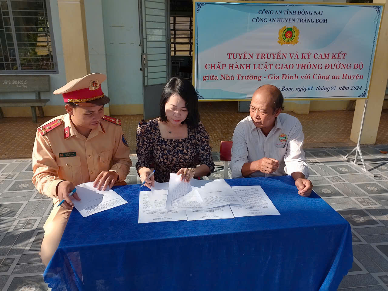 Ngày 09/9/2024, tại trường THCS Nguyễn Văn Trỗi, Công an huyện Trảng Bom phối hợp với Trường THCS Nguyễn Văn Trỗi-xã Sông Thao và Công an xã Sông Thao tổ chức tuyên truyền và ký cam kết chấp hành Luật giao đường bộ giữa nhà trường-Gia đình với Công an huyện Trảng Bom. Tham dự buổi tuyên truyền có đồng chí Thượng uý Phạm Công Anh - cán bộ Đội Cảnh sát giao thông - trật tự Công an huyện Trảng Bom; đồng chí Lê Minh Long - Đảng ủy viên, PCT.UBND xã; đồng chí Nguyễn Cảnh Thành - Phó Trưởng Công an xã Sông Thao; đại điện gia đình học sinh, cùng toàn thể cán bộ, giáo viên, nhân viên và 444 em học sinh trường THCS Nguyễn Văn Trỗi.