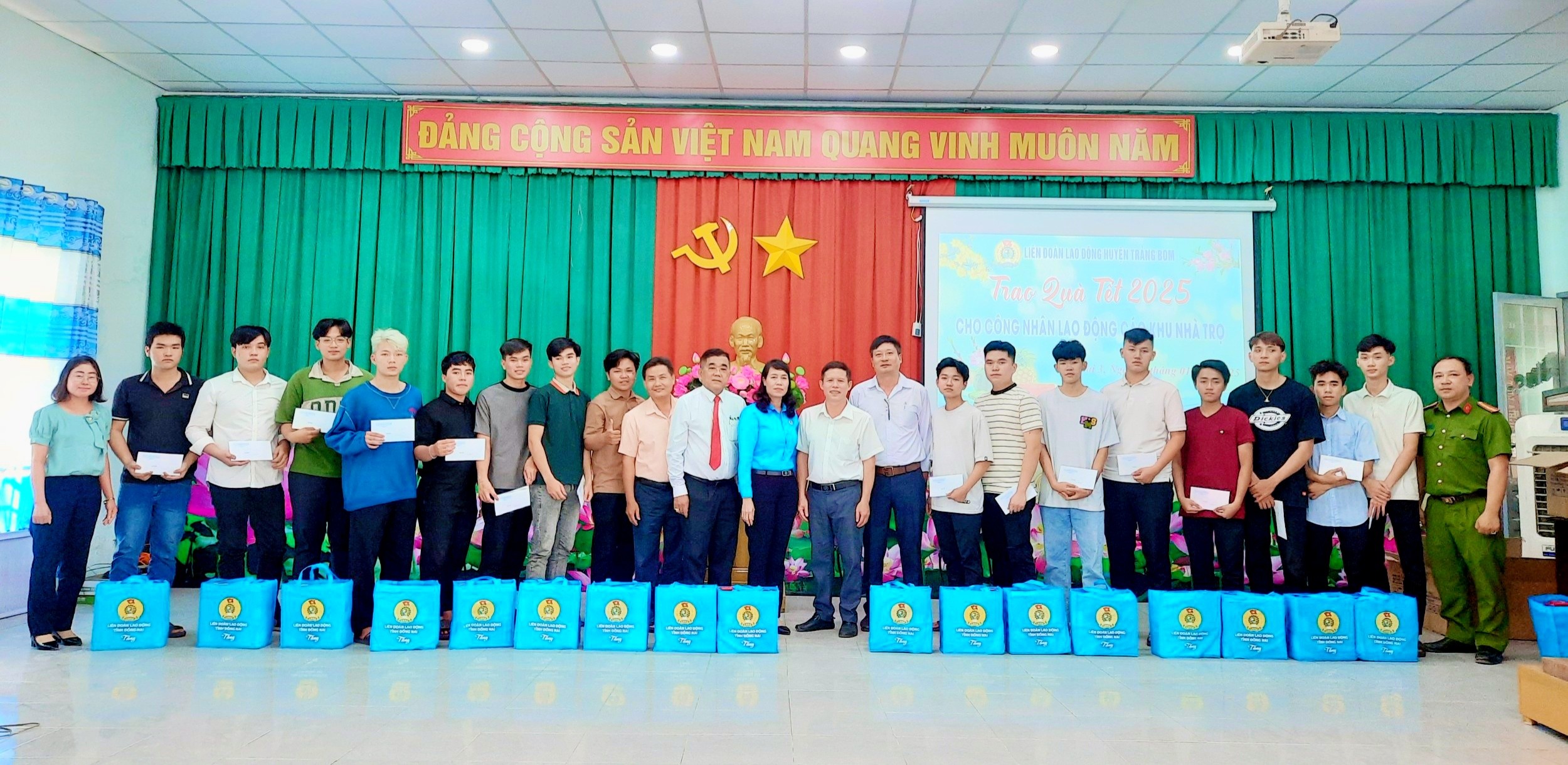 Trong chương trình, Liên đoàn lao động huyện Trảng Bom đã trao tặng 34 phần phần (trị giá 1.000.000đ/phần) và lãnh đạo địa phương đã trao tặng 34 phần quà tết (trị giá 500.000đ/phần) cho thanh niên nhập ngũ và thực hiện nghĩa vụ tham gia công an nhân dân năm 2025, đây là những món quà trang trọng và ý nghĩa, đồng thời gửi lời chúc mừng tốt đẹp nhất, mong muốn họ có một năm mới an khang, thịnh vượng và thành công trong hành trình nhập ngũ.