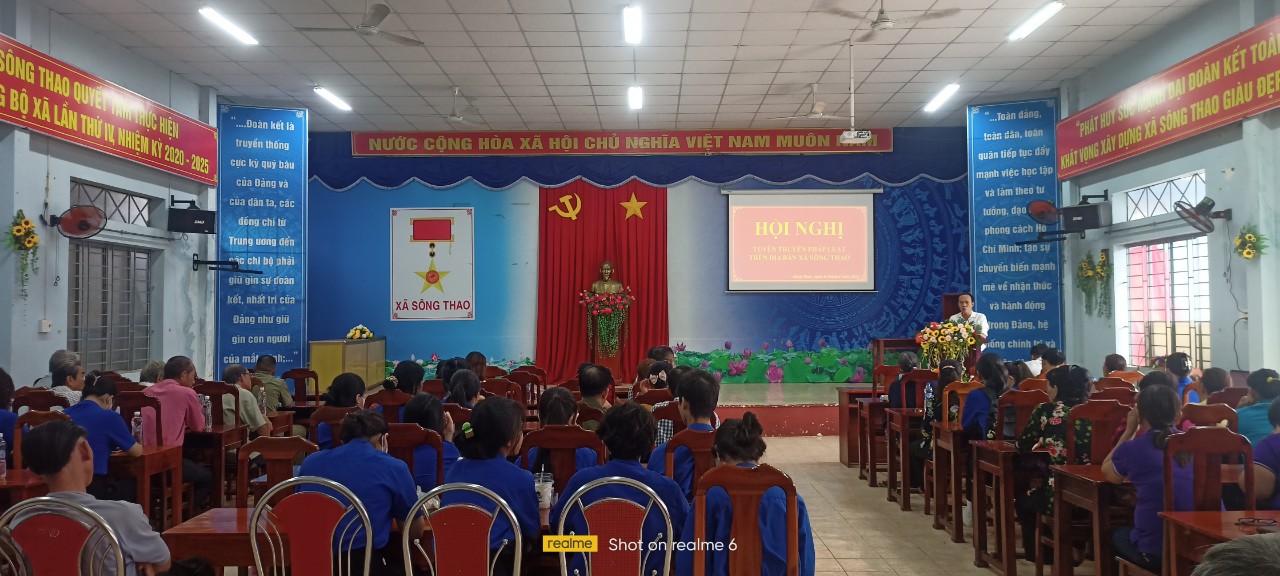 Ngày 08/6/2024, tại Hội trường Ủy ban nhân dân xã; Ủy ban nhân dân xã Sông Thao đã tổ chức hội nghị tuyên truyền phổ biến giáo dục pháp luật năm 2024 cho đoàn viên, hội viên và Nhân dân trên địa bàn xã. Dự buổi tuyên truyền có bà Vũ Thị Kiều Oanh-Trưởng Khối vận, Phó Chủ tịch Hội đồng nhân dân xã; Trung tá Bùi Phi Long-Đảng ủy viên, Trưởng Công an xã; Ông Đinh Văn Tình – Đảng ủy viên, Chỉ huy trưởng Ban Chỉ huy Quân sự xã và lãnh đạo Ủy ban Mặt trận Tổ quốc và các ban ngành, đoàn thể xã; cán bộ, công chức, người hoạt động không chuyên trách từ xã tới ấp và hơn 100 người dân trên địa bàn xã.