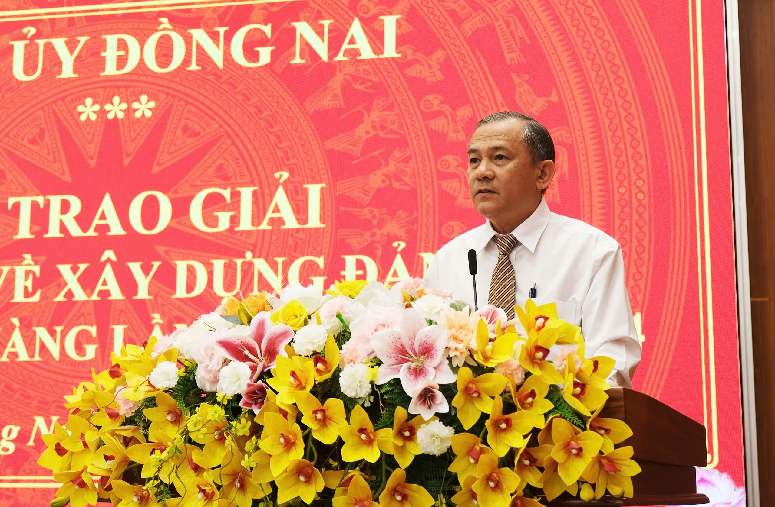 Thay mặt Ban Tổ chức giải báo chí về XDĐ của tỉnh Đồng Nai lần thứ V - năm 2024; đồng chí Phạm Tấn Linh, Phó trưởng ban Ban Tuyên giáo Tỉnh ủy cho biết, Ban Tổ chức giải đã nhận được nhiều bài dự thi, qua xem xét đã quyết định chọn 25 bài để chấm chung khảo. Kết quả chung cuộc, đã chọn 12 tác phẩm xuất sắc để trao giải.