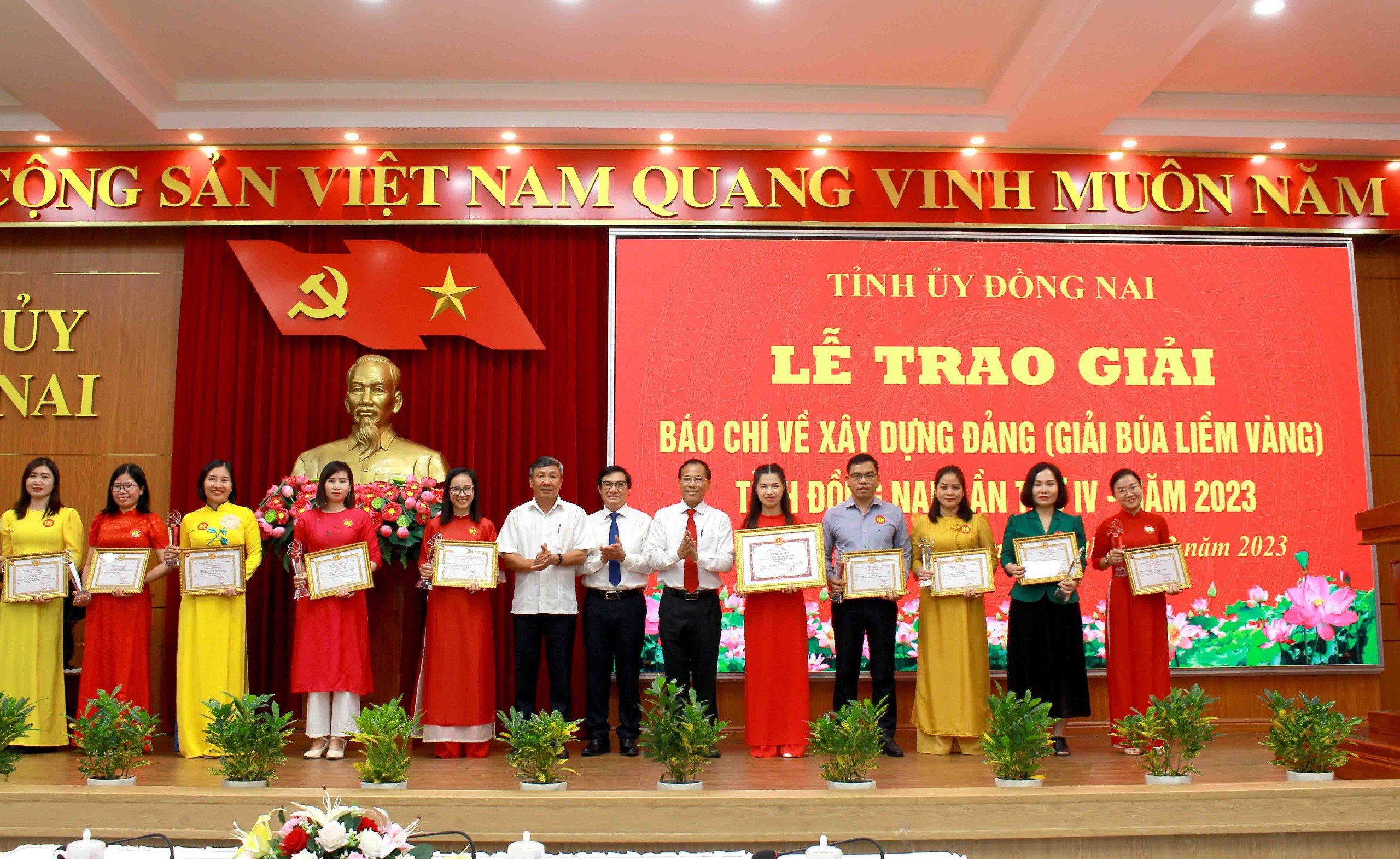 Chiều ngày 28/12, Ban Tuyên giáo Tỉnh ủy - cơ quan Thường trực Ban Tổ chức Giải báo chí về XDĐ, giải Búa liềm vàng tỉnh Đồng Nai lần thứ IV - năm 2023 đã tổ chức Lễ trao giải năm 2023. Tham dự lễ trao giải có các đồng chí: Dương Minh Tuấn - Phó Vụ trưởng Cơ quan Thường trực khu vực miền Nam, Ban Tuyên giáo Trung ương; Hồ Thanh Sơn, Phó Bí thư Thường trực Tỉnh ủy; Phạm Xuân Hà, UVTV, Trưởng Ban Tuyên giáo Tỉnh ủy, Trưởng Ban Tổ chức giải Búa Liềm vàng tỉnh Đồng Nai; Nguyễn Sơn Hùng, TUV, Phó Chủ tịch UBND tỉnh.