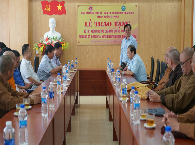 Theo kế hoạch số 80-KH/BDVTU, ngày 11/10/2024 của Ban Dân vận Tỉnh ủy Đồng Nai về việc phối hợp Ban Trị sự giáo hội Phật giáo (GHPGVN) Việt Nam tỉnh Đồng Nai tổ chức đi thăm, tặng quà cho các gia đình có trẻ em bị ảnh hưởng bão lũ do cơn bão số 3 (Yagi) tại 02 tỉnh Lào Cai và tỉnh Cao Bằng.