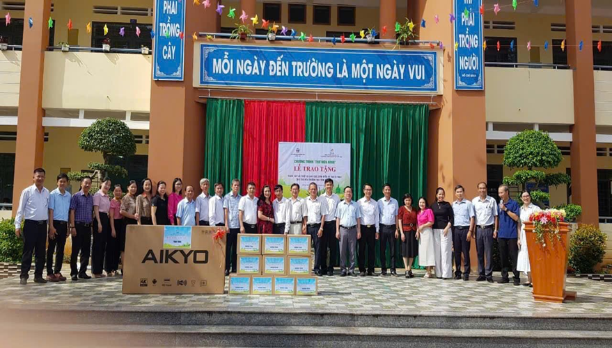 Ông Võ Ngọc Thạch, PGĐ Sở GD&ĐT tặng thiết bị học tập