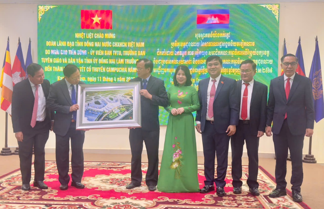 Trong khuôn khổ chuyến công tác tại Cộng hòa Dân chủ Nhân dân Lào và Vương quốc Campuchia, ngày 11/4/2025 đoàn cán bộ lãnh đạo của tỉnh Đồng Nai do đồng chí Cao Tiến Dũng, UVTVTU, Trưởng ban Ban Tuyên giáo và Dân vận Tỉnh ủy làm trưởng đoàn đã thăm, chúc Tết tại tỉnh Kampong Thom (Vương quốc Campuchia). Đoàn công tác của tỉnh Đồng Nai có các đồng chí: Hoàng Thị Bích Hằng, TUV, Phó Chủ tịch HĐND tỉnh; Hồ Văn Hà, TUV, Phó Chủ tịch UBND tỉnh và lãnh đạo Văn phòng UBND tỉnh; Sở Văn hóa, Thể thao và Du lịch; Liên hiệp các tổ chức hữu nghị tỉnh; Sở Giáo dục và Đào tạo; Văn phòng Tỉnh ủy; Ban Tuyên giáo và Dân vận Thành ủy Biên Hòa. Đón tiếp và chủ trì buổi làm việc với đoàn công tác của tỉnh Đồng Nai có Ngài Điệp Piry, Chủ tịch HĐND tỉnh và ngài Nhek Ban Kheng, Phó tỉnh trưởng tỉnh Kampong Thom (Vương quốc Campuchia).