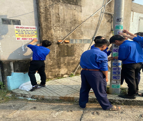 Đoàn viên, thanh niên xóa bảng quảng cáo sai quy định