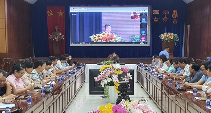 Quang cảnh hội nghị trực tuyến triển khai Luật Thực hiện dân chủ ở cơ sở tại huyện Xuân Lộc