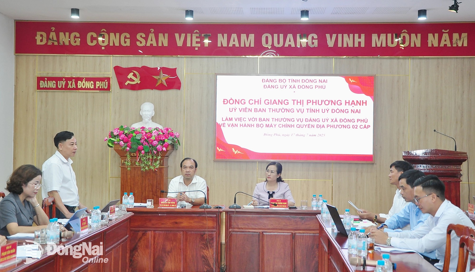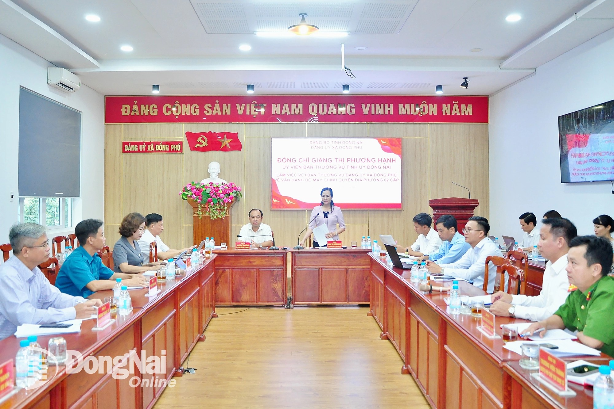 Chiều 17-7, Ủy viên Ban Thường vụ Tỉnh ủy, Bí thư Đảng ủy phường Bình Phước Giang Thị Phương Hạnh đã làm việc với Ban Thường vụ Đảng ủy xã Đồng Phú nhằm nắm bắt tình hình vận hành bộ máy sau sáp nhập.