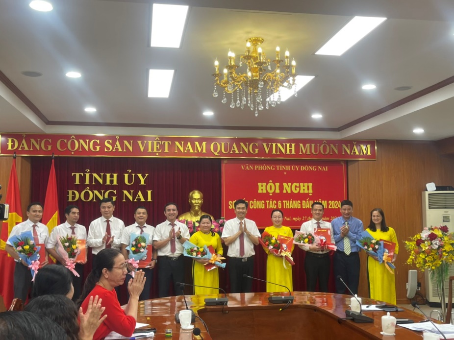 Chiều ngày 27/6/2024, Văn phòng Tỉnh ủy tổ chức Hội nghị sơ kết để đánh giá kết quả thực hiện nhiệm vụ 6 tháng đầu năm 2024 và đề ra chương trình công tác 6 tháng cuối năm; đồng thời, tổ chức trao các quyết định về công tác cán bộ thực hiện theo Quy định số 38-QĐ/TU, ngày 08/4/2024 của Ban Thường vụ Tỉnh ủy về chức năng, nhiệm vụ quyền hạn và tổ chức bộ máy của Văn phòng Tỉnh ủy và Đề án số 02-ĐA/VPTU, ngày 20/5/2024 của Văn phòng Tỉnh ủy.